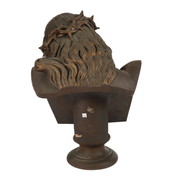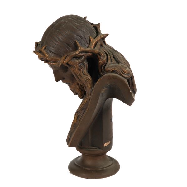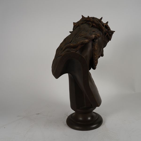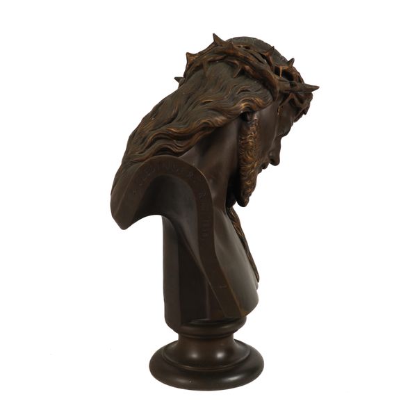 JEAN-BAPTSISTE AUGUSTE CLESIGNER (FRENCH, 1814-1883): A FRENCH BRONZE BUST OF CHRIST WEARING A CROWN OF THORNS