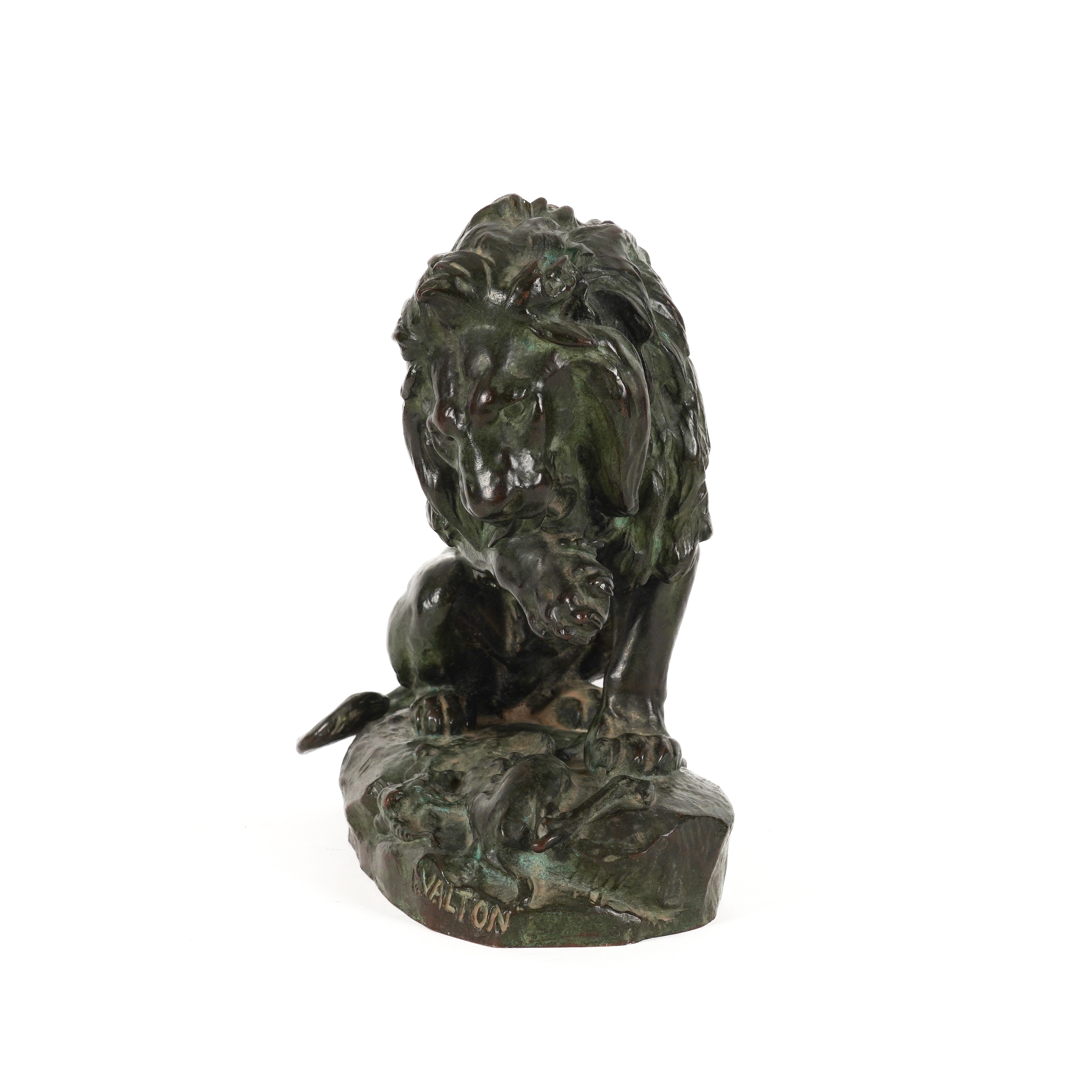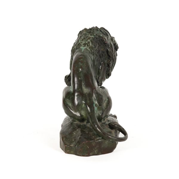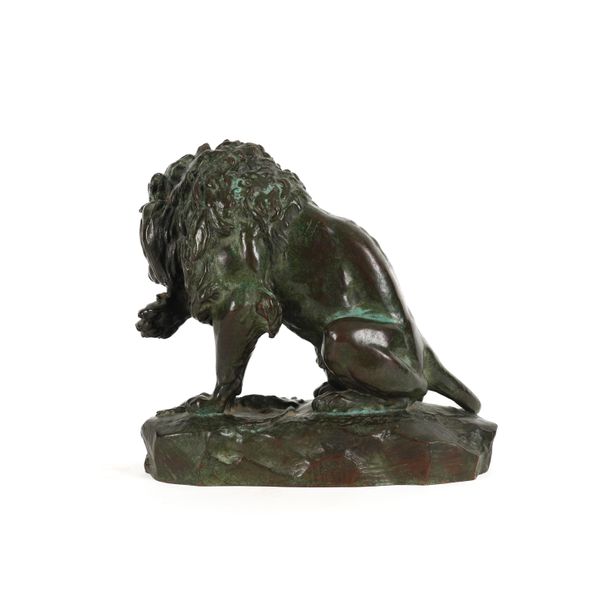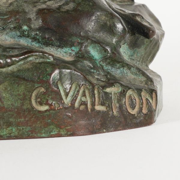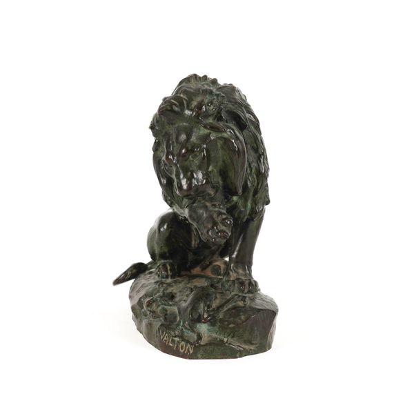 CHARLES VALTON (1851-1918): A PATINATED BRONZE OF A LION LICKING PAW OVER PREY