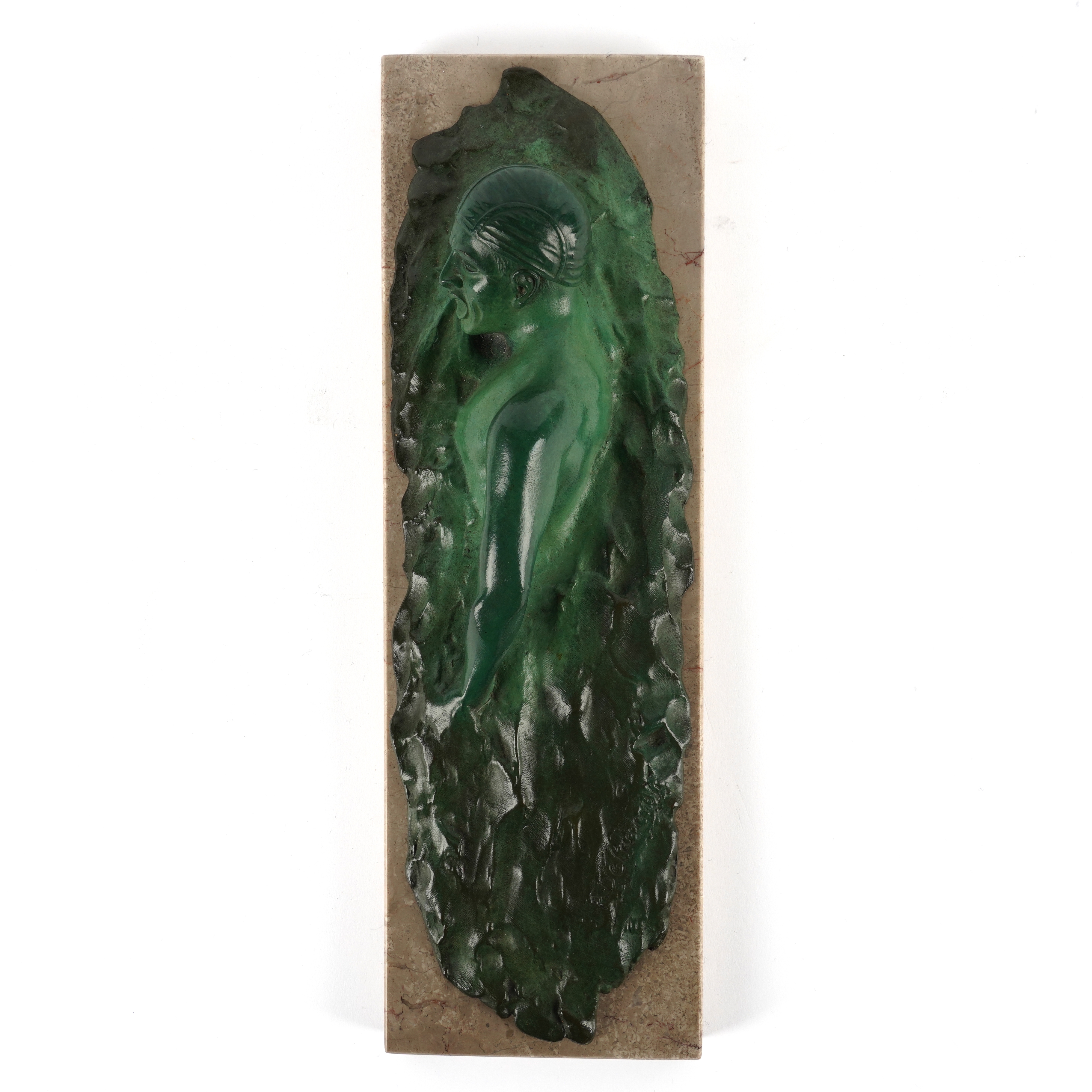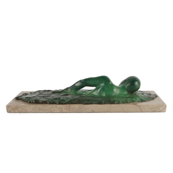 AN ART DECO GREEN PATINATED BRONZE OF A SWIMMER