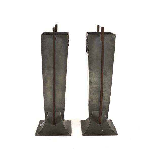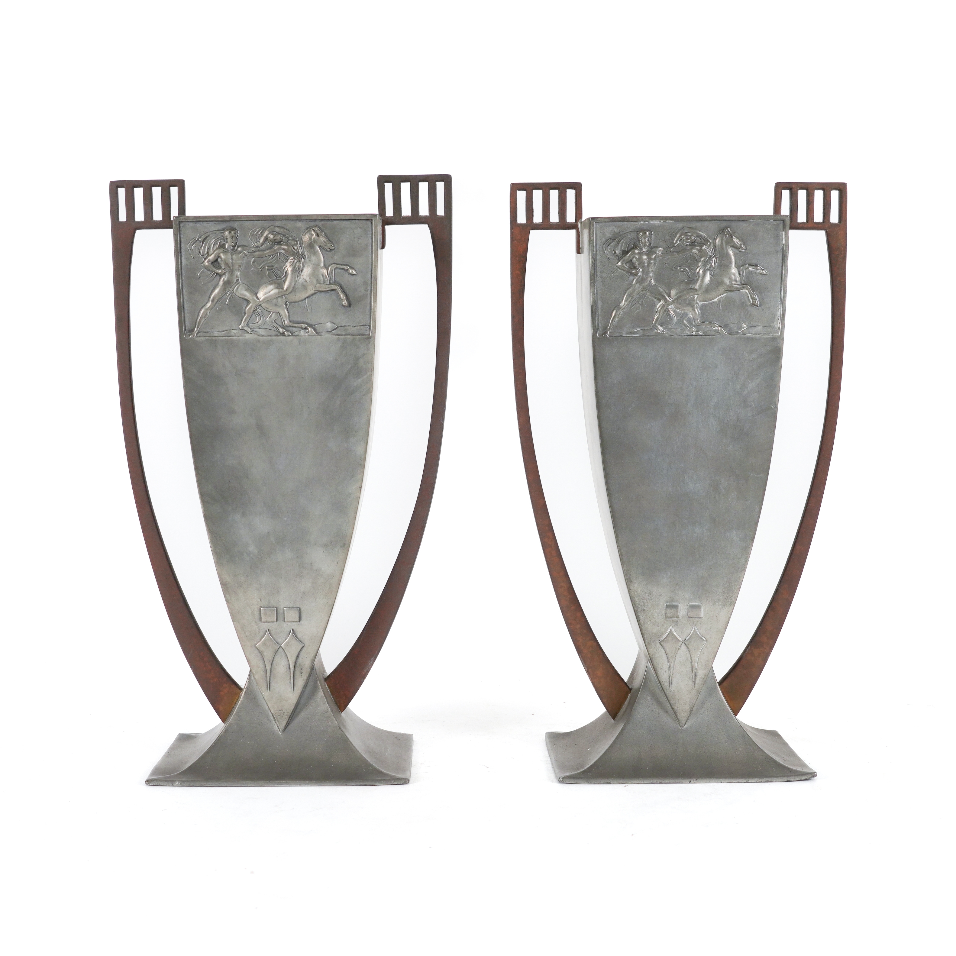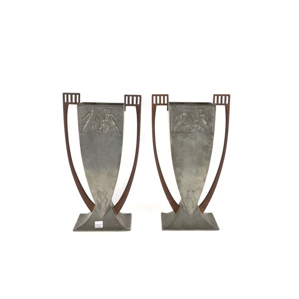 WMF: A PAIR OF ART DECO PEWTER AND COPPER VASES (2)