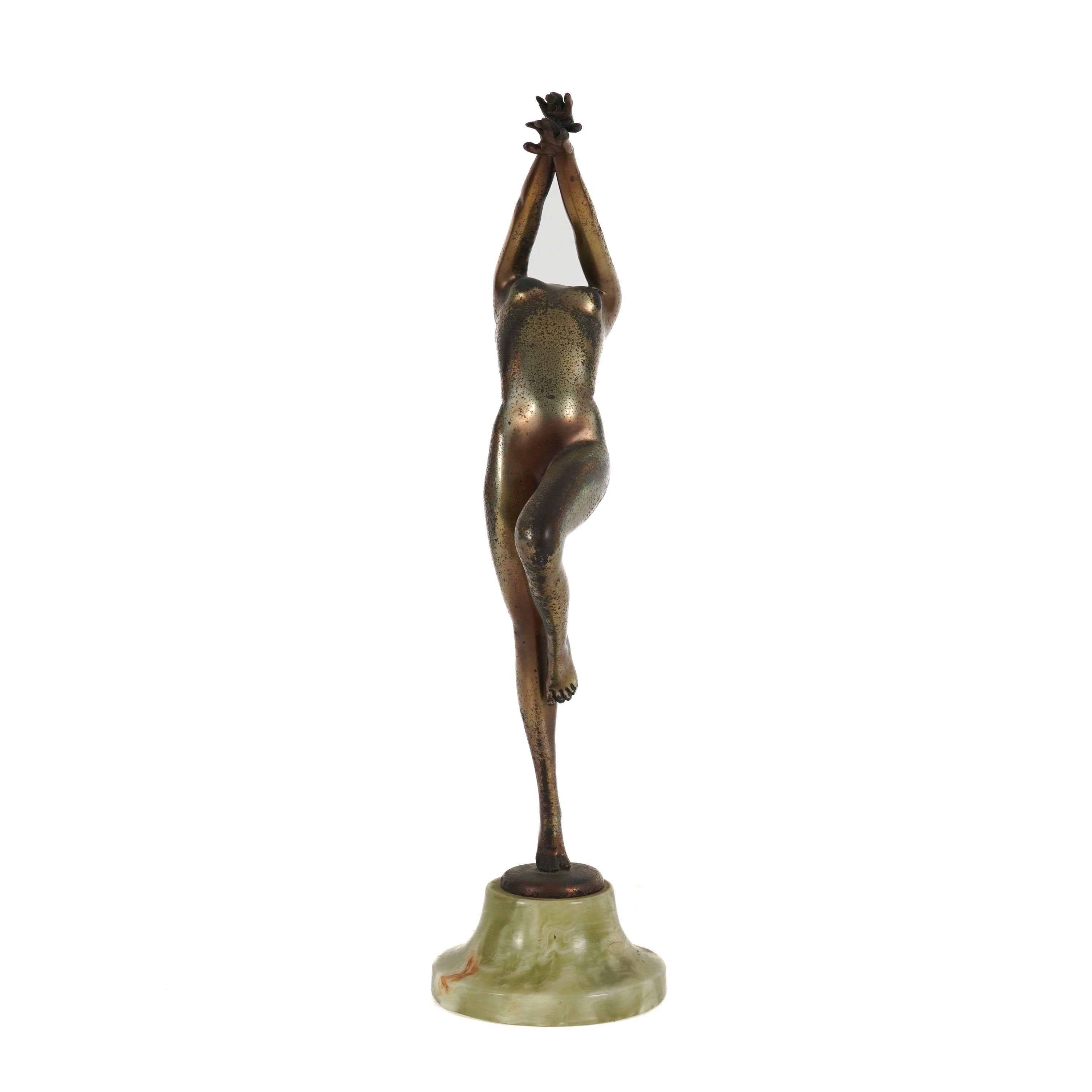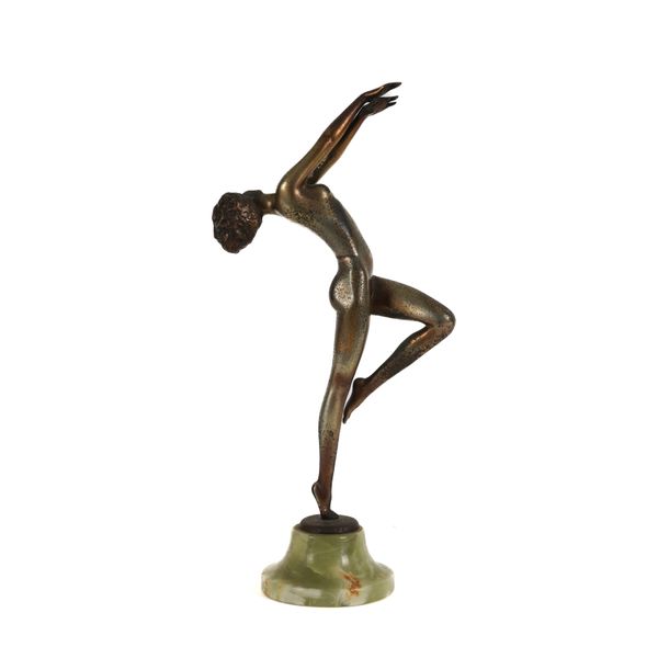 JOSEPH LORENZL (1892-1950): AN ART DECO SILVERED BRONZE FIGURE OF A DANCER