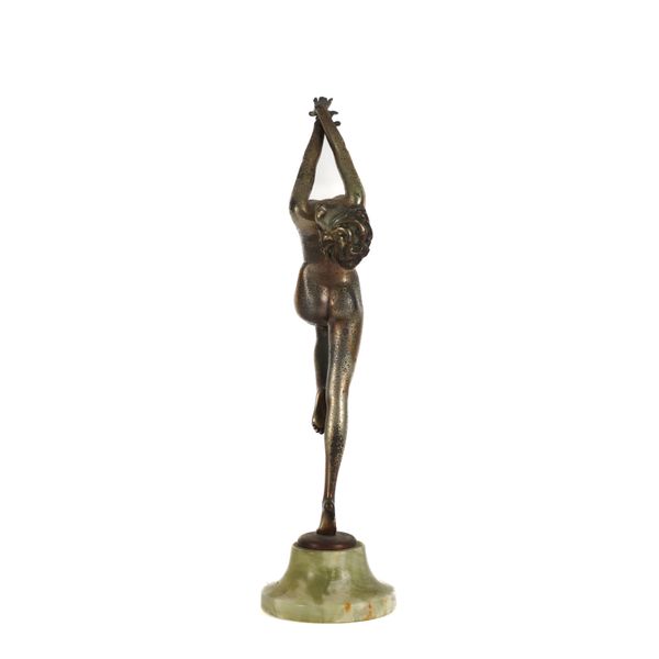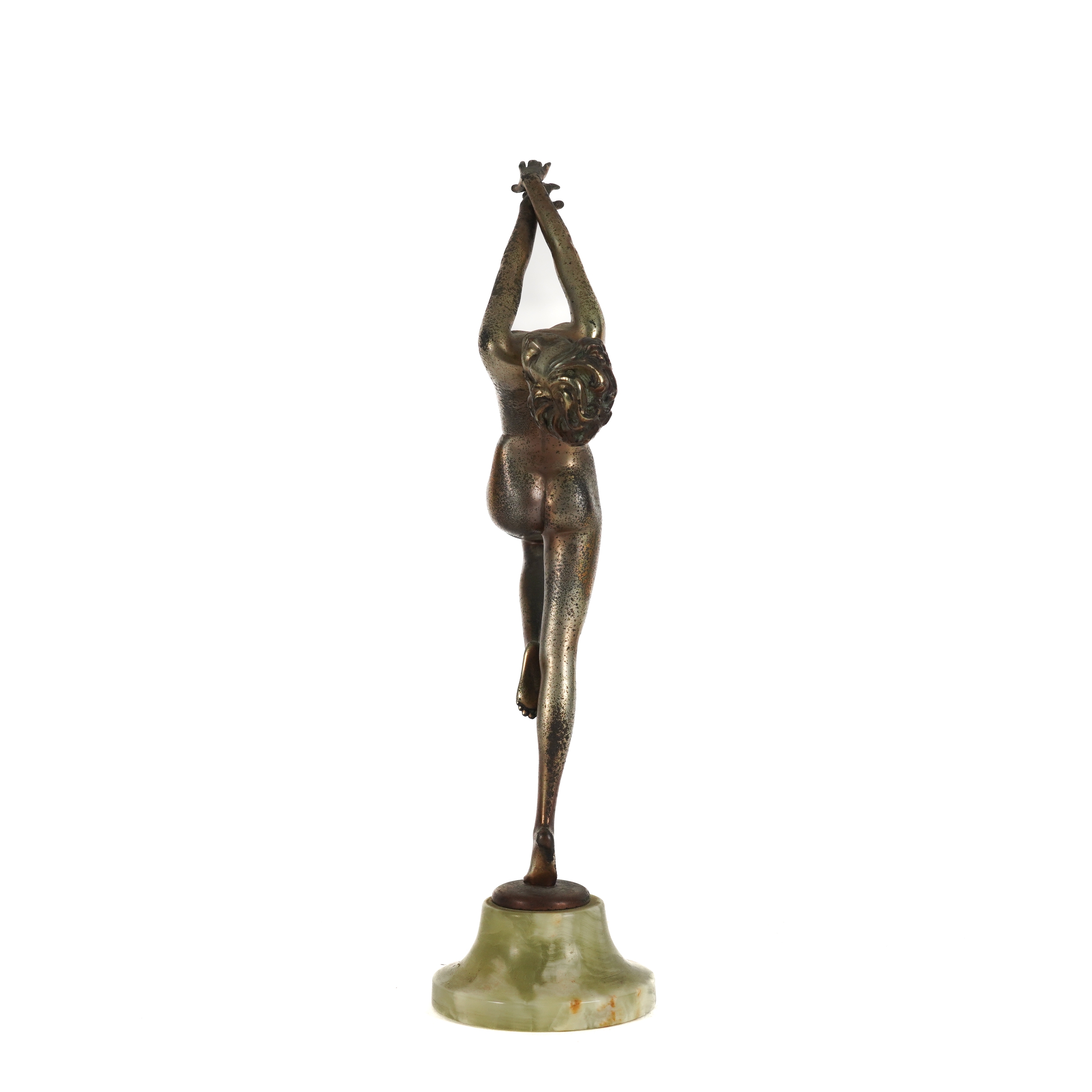 The base stamped ‘Real Bronze, Lorenzl' on green onyx base, 30cm high