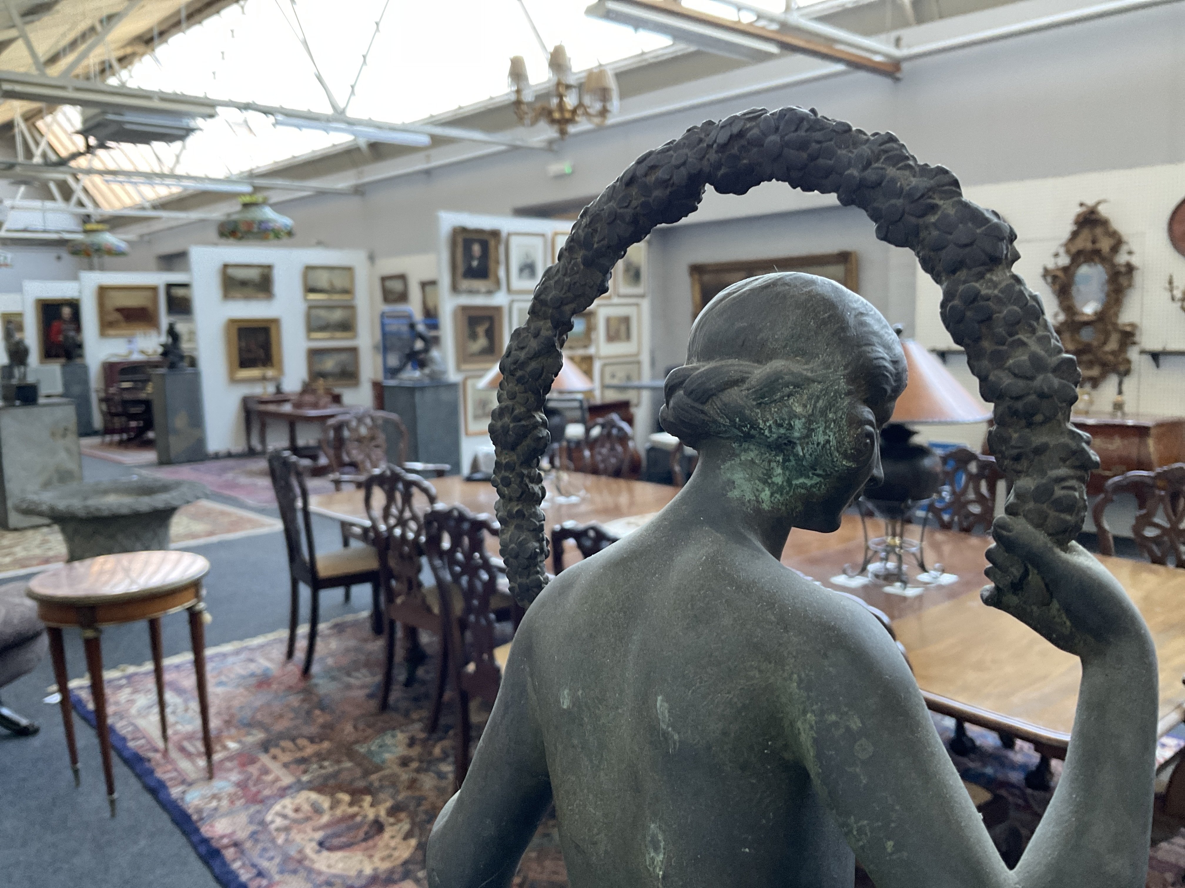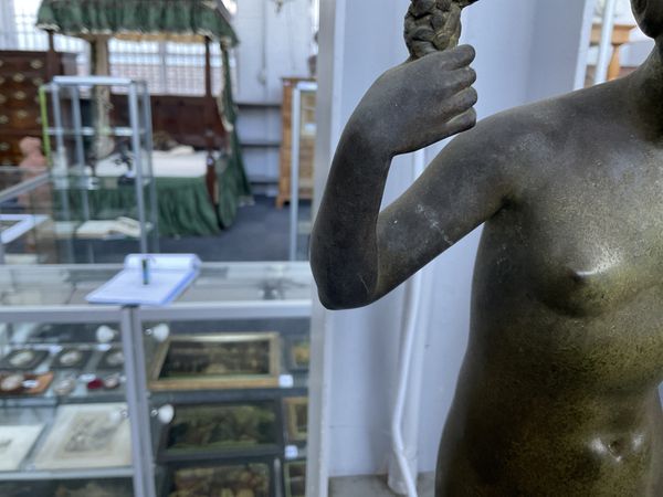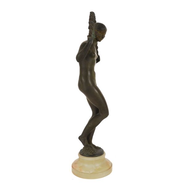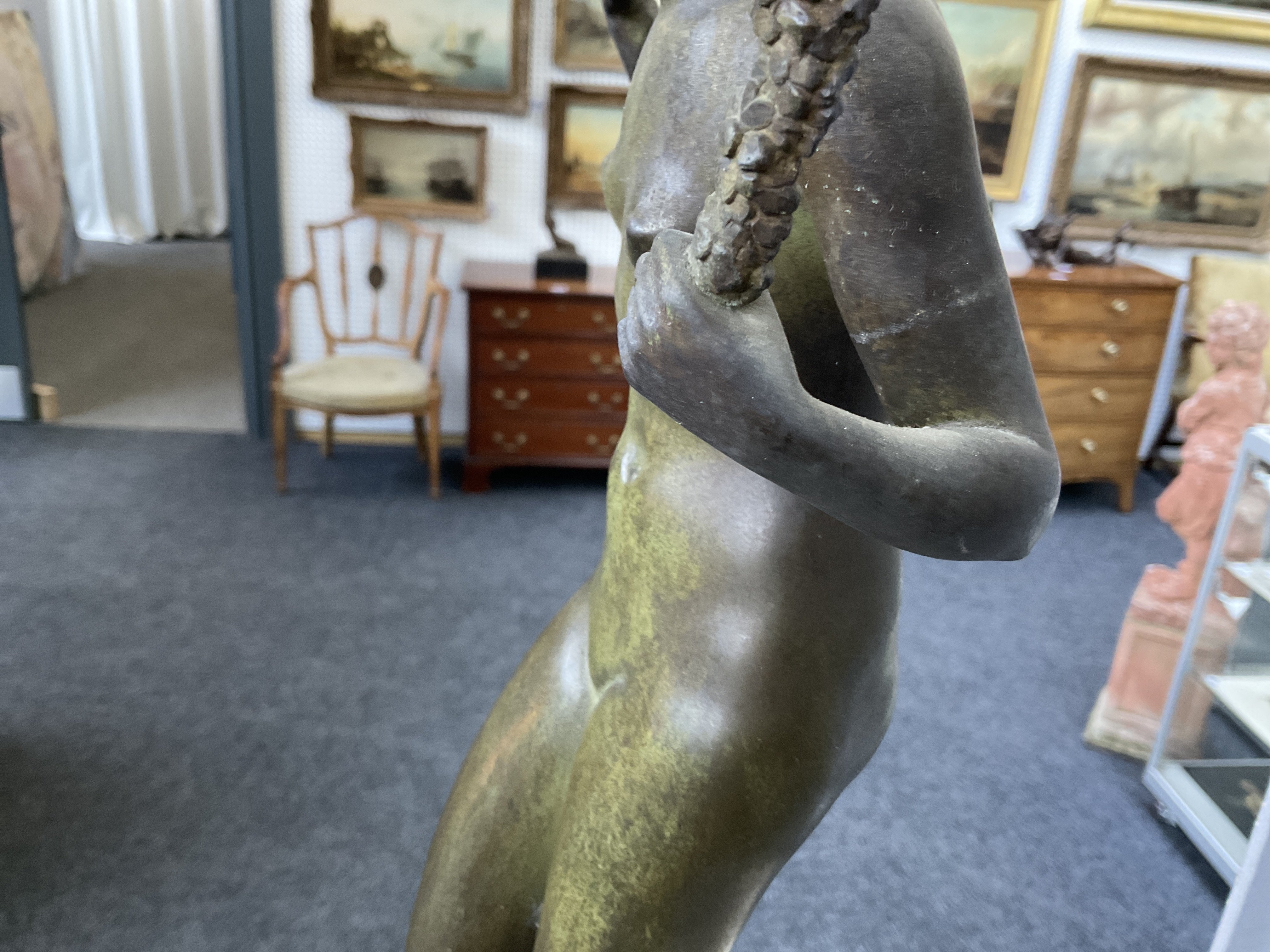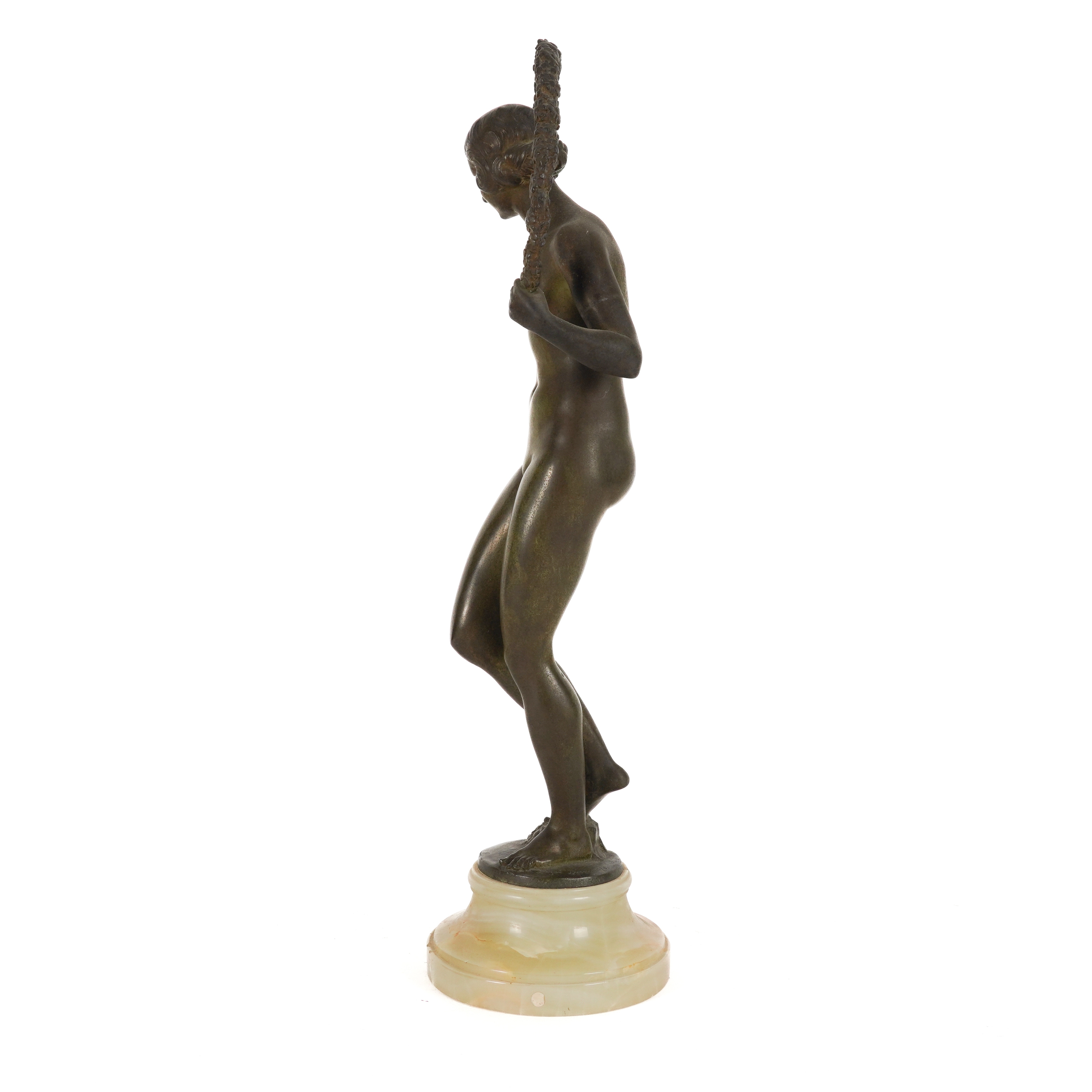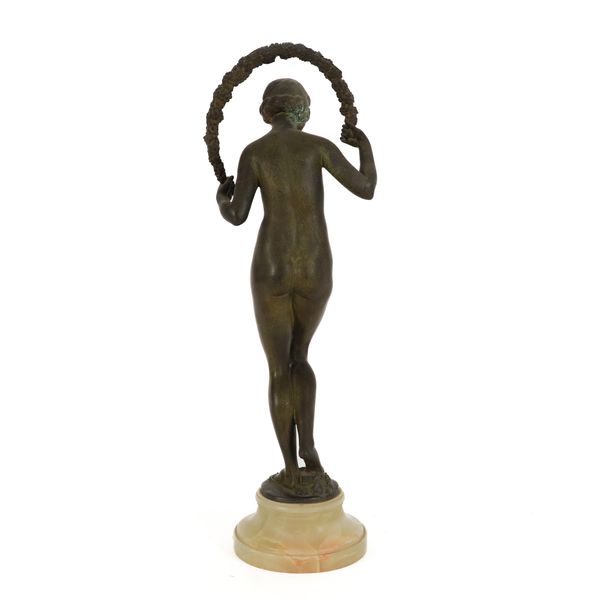 JOE DESCOMPS CORMIER; A PATINATED BRONZE FEMALE FIGURE WITH A FLORAL BOWER