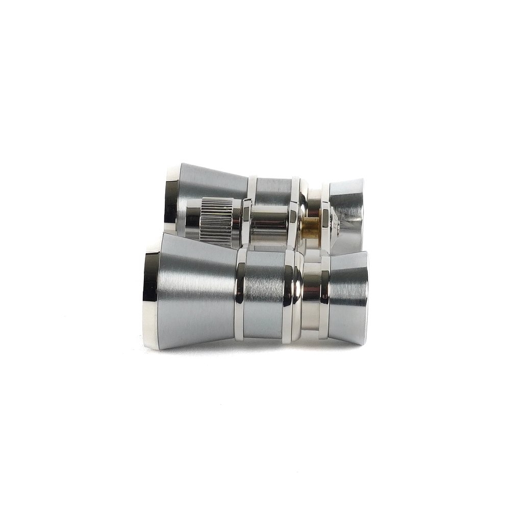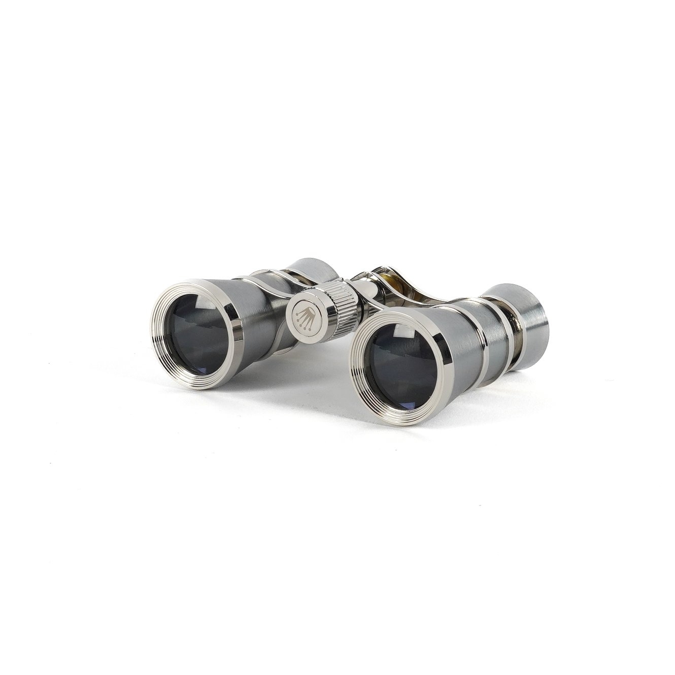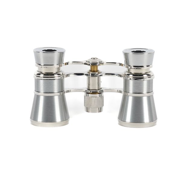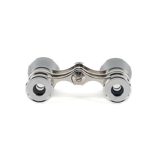 Modern In stainless steel, measuring 9.5cm x 5.5cm, with a green velvet pouch