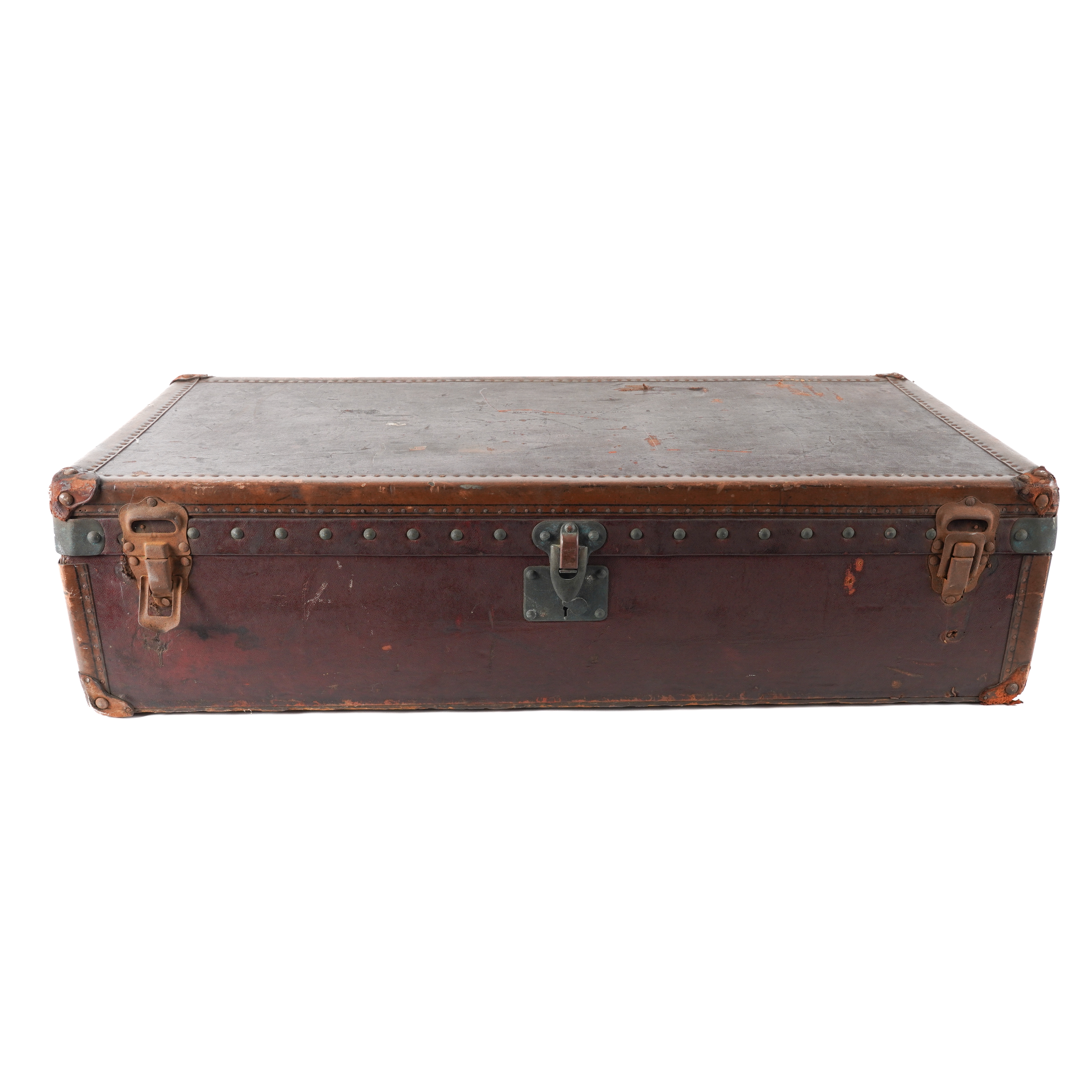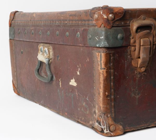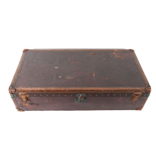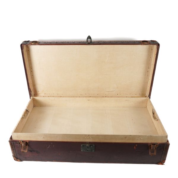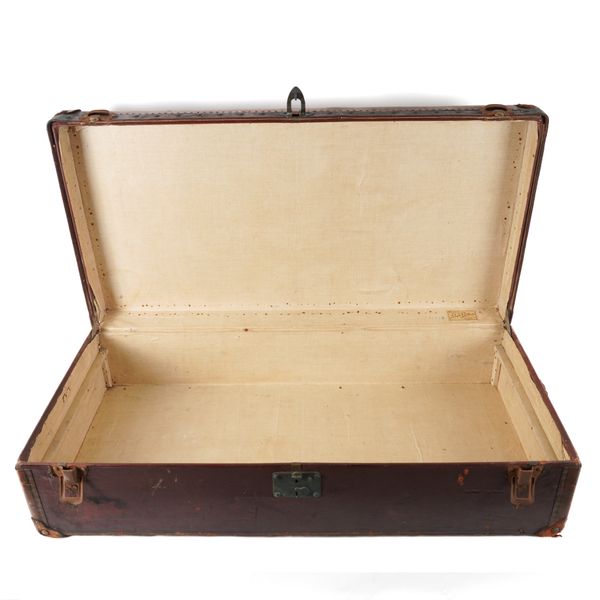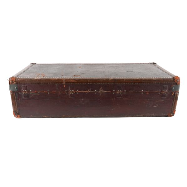 LOUIS VUITTON: A BURGUNDY AND BROWN LEATHER TRAVELLING TRUNK
