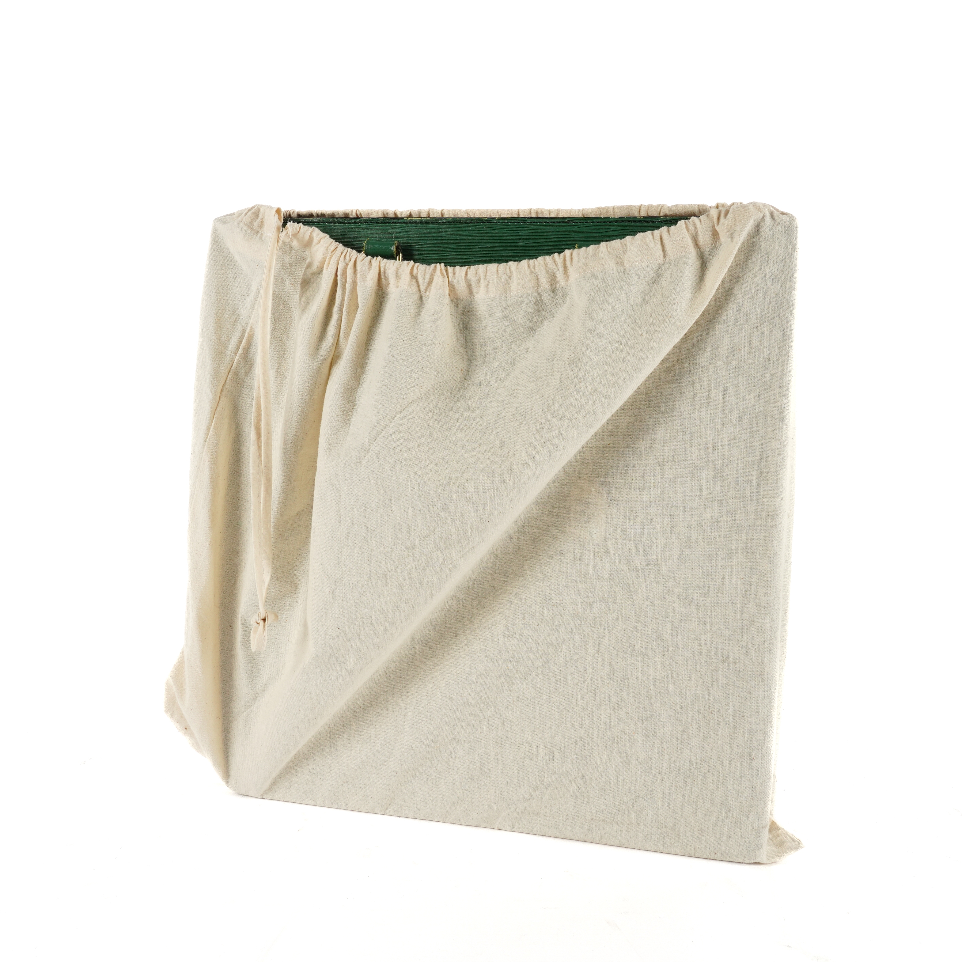 The emerald green rectangular bag with twin loop handles and gold hardware, grey suede lining, with serial number MI0940 indicating production in France 1990, 36cm x 37cm
