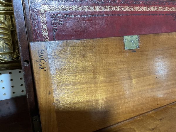 Generally in good condition with wear consistent with age and use. One loss to the wood on next to the left hand ink bottle (photographed). Lock plate to the main compartment has no opposing key-hole, but there is a brass keyhole plaque present. The two lidded compartments do not close flush indicating replacement of one section of wood possibly. Inkwells are lacking lids. See additional images.