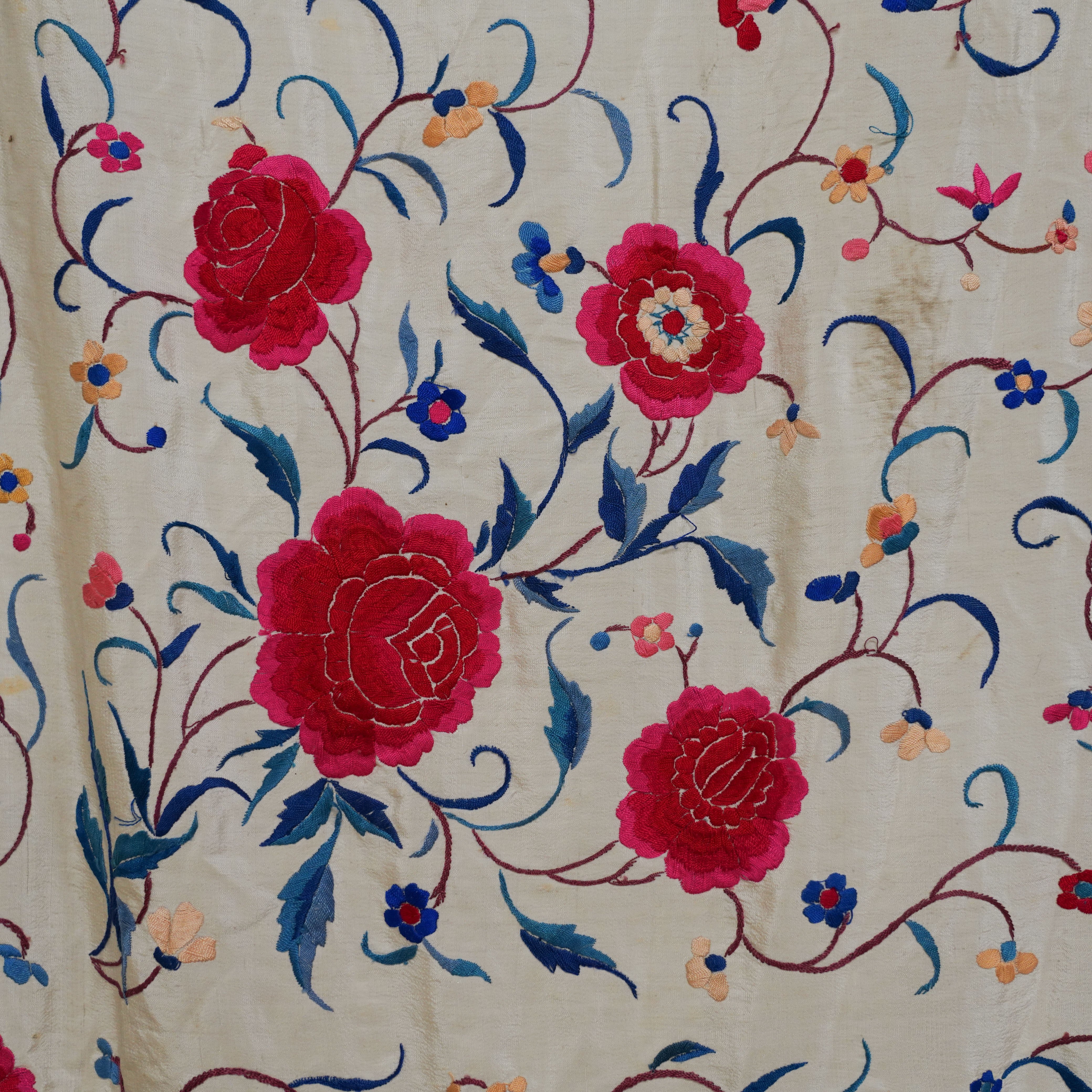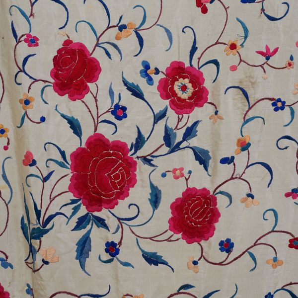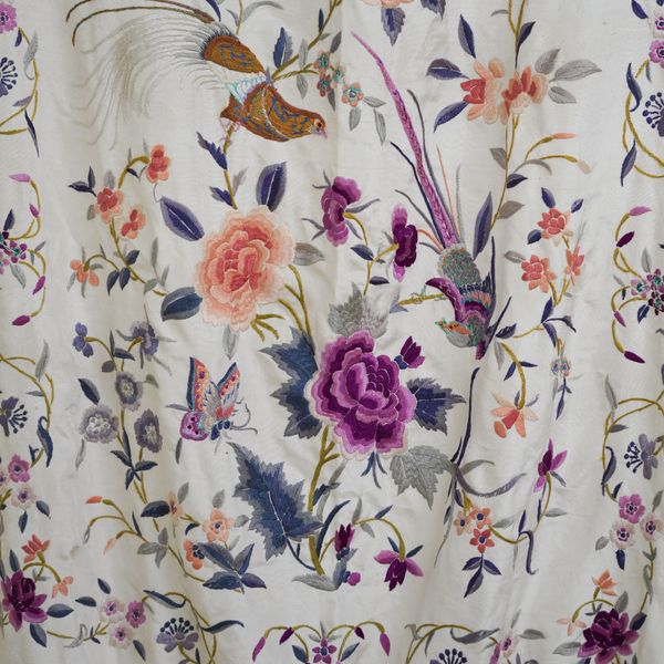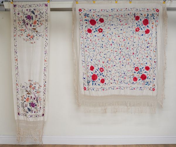 TWO CHINESE-EXPORT SILK EMBROIDERED SHAWLS (2)