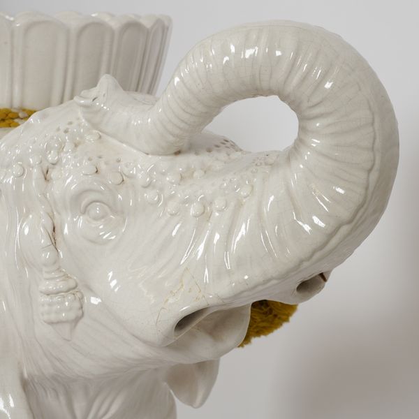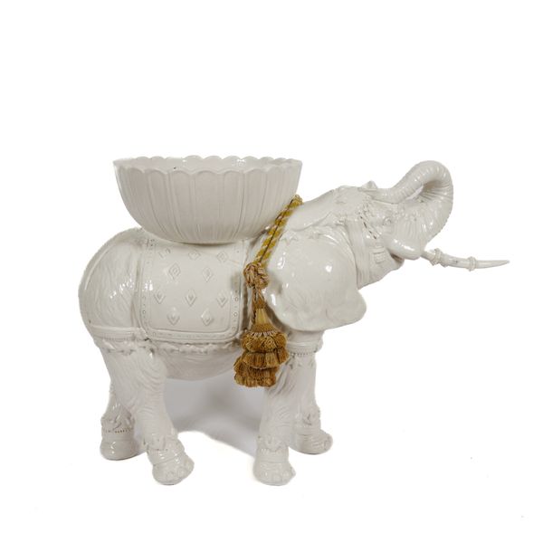Modern With tusks and modelled caparisoned with bowl, 81cm high