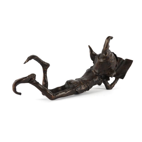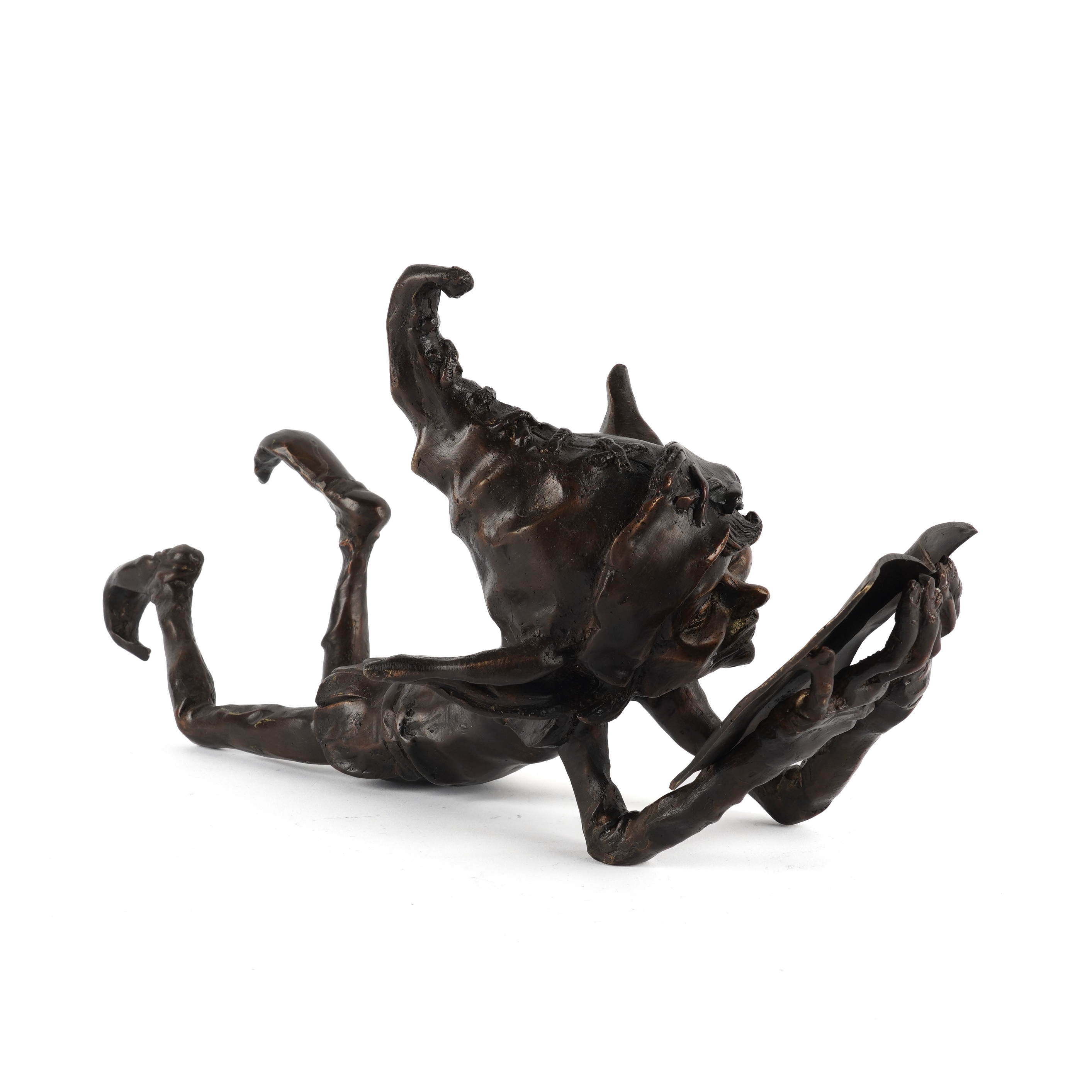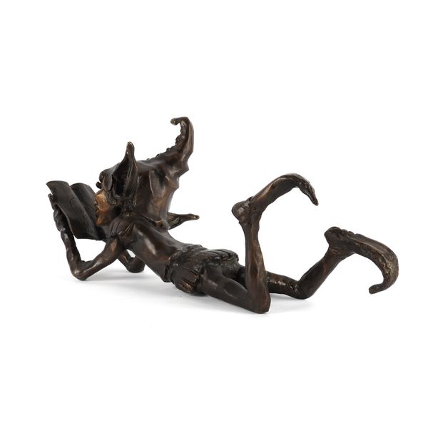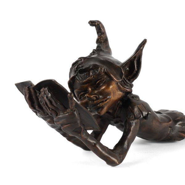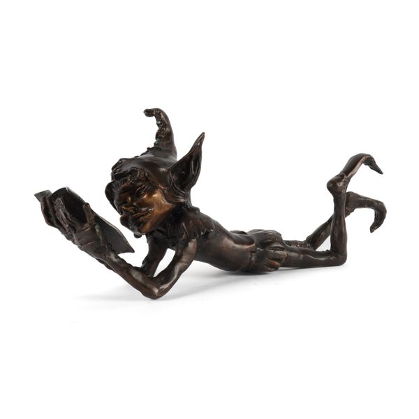 IN THE MANNER OF DAVID GOODE: A PATINATED BRONZE FIGURE OF A GOBLIN READING