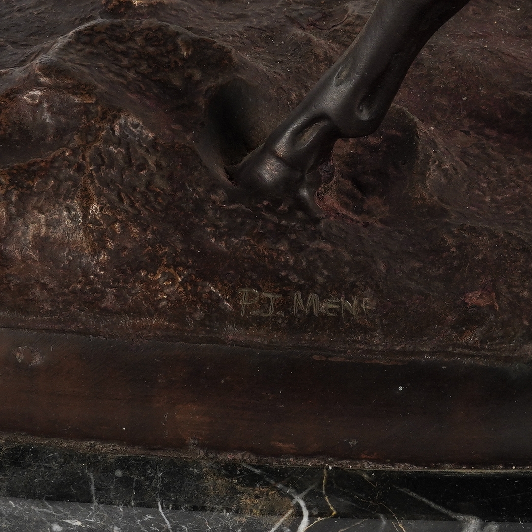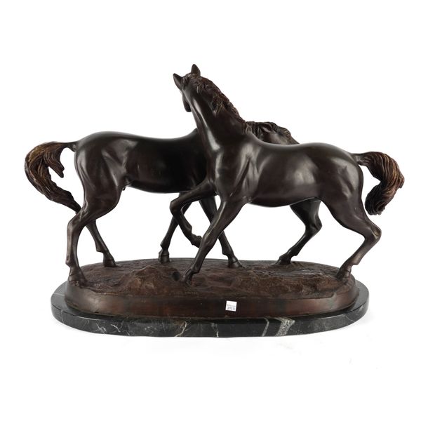 Late 20th Century Signed to the cast base, mounted on a marble base, 64cm wide including base