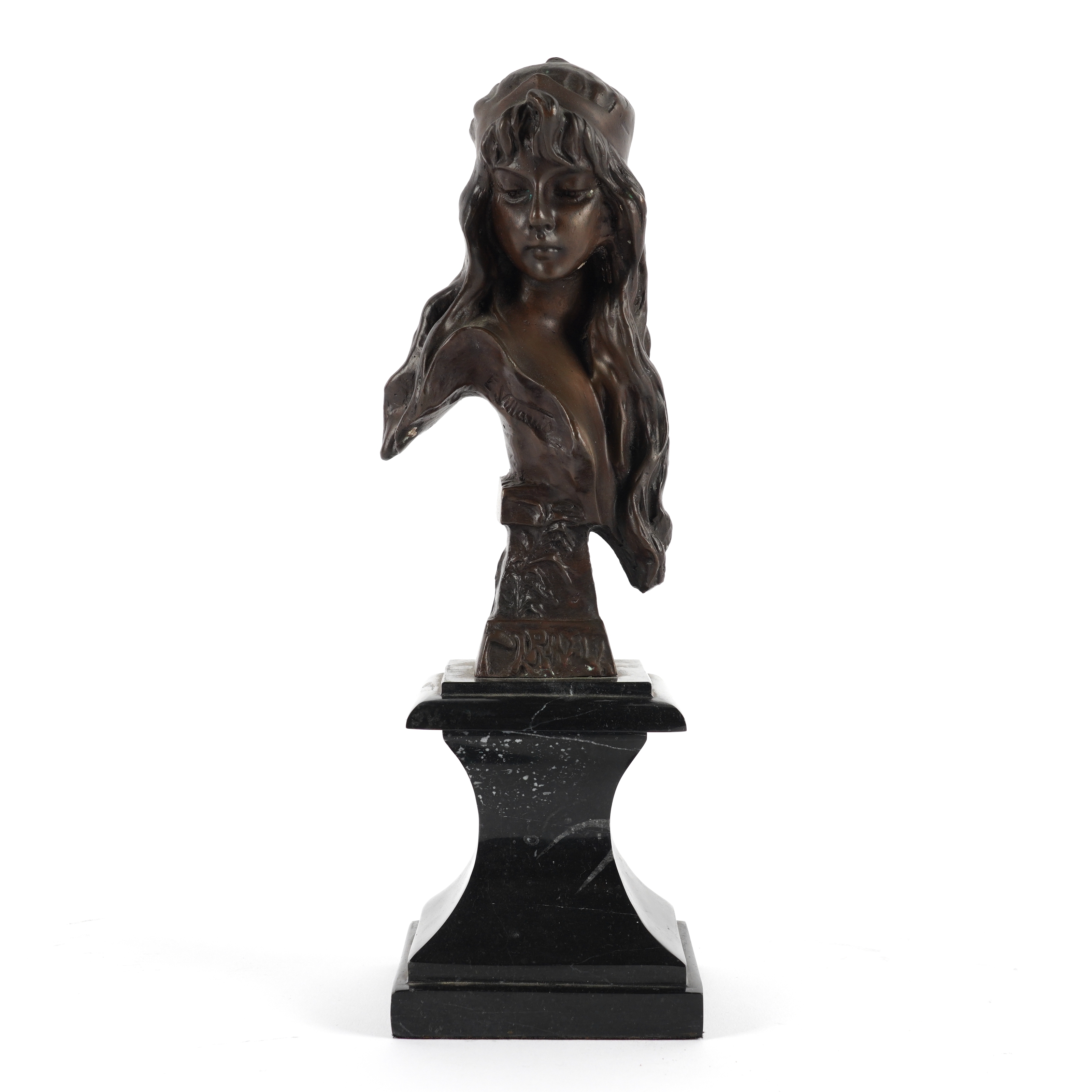 AFTER EMMANUEL VILLANIS (FRENCH 1858-1914): A BRONZE FEMALE BUST ENTITLED 'CARMELL'