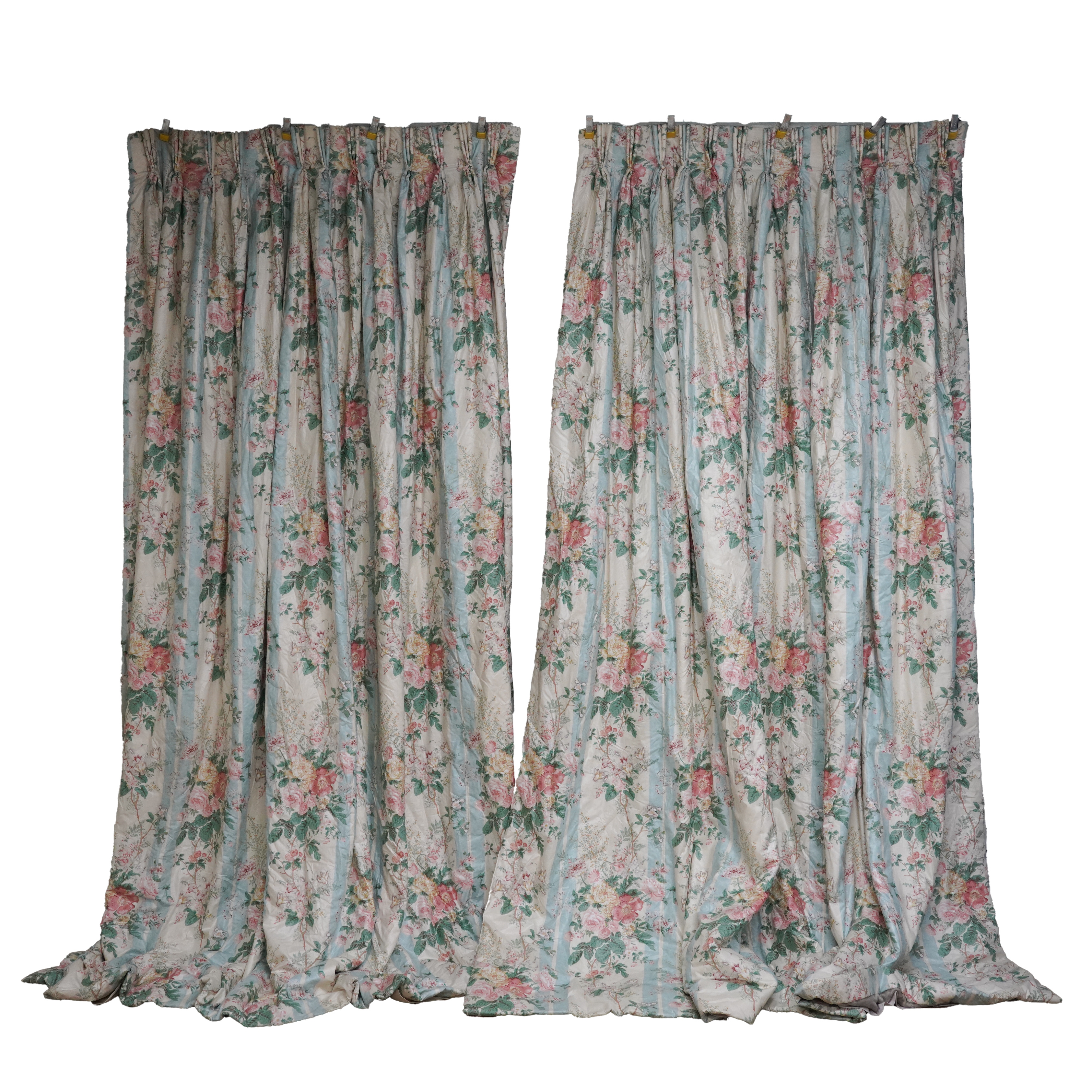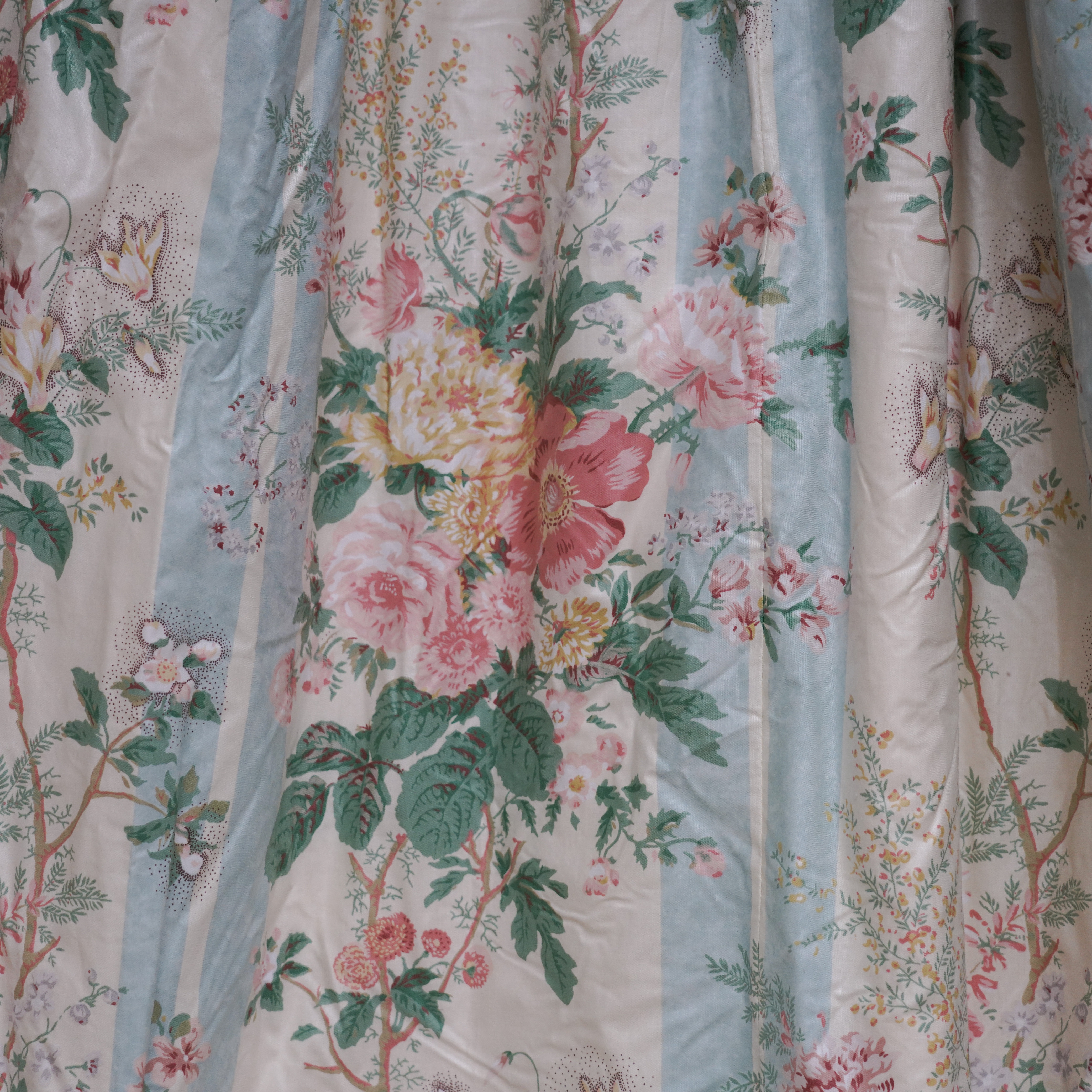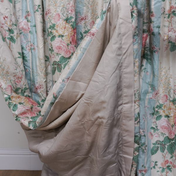 TWO PAIRS OF GLAZED COTTON CHINZT BLUE AND PINK FLORAL CURTAINS AND A SINGLE CURTAIN (7)