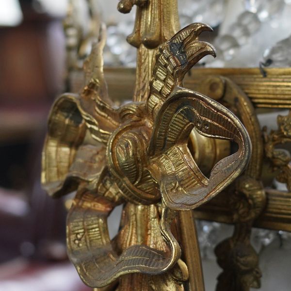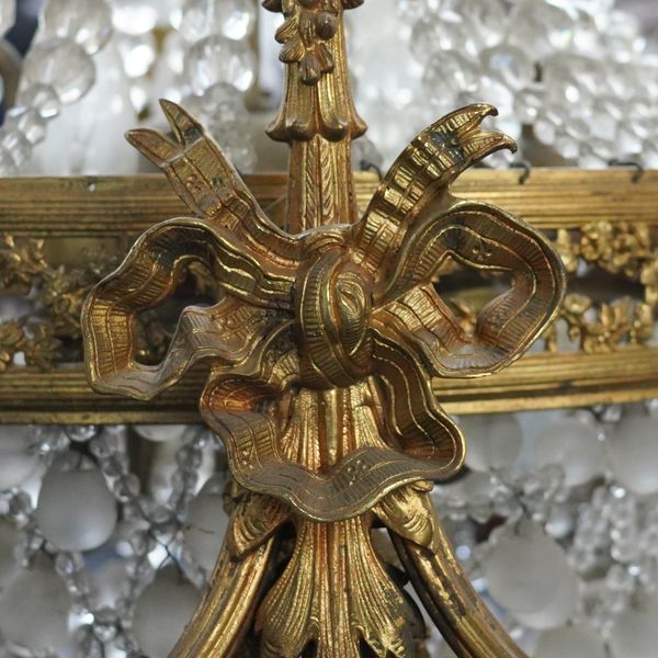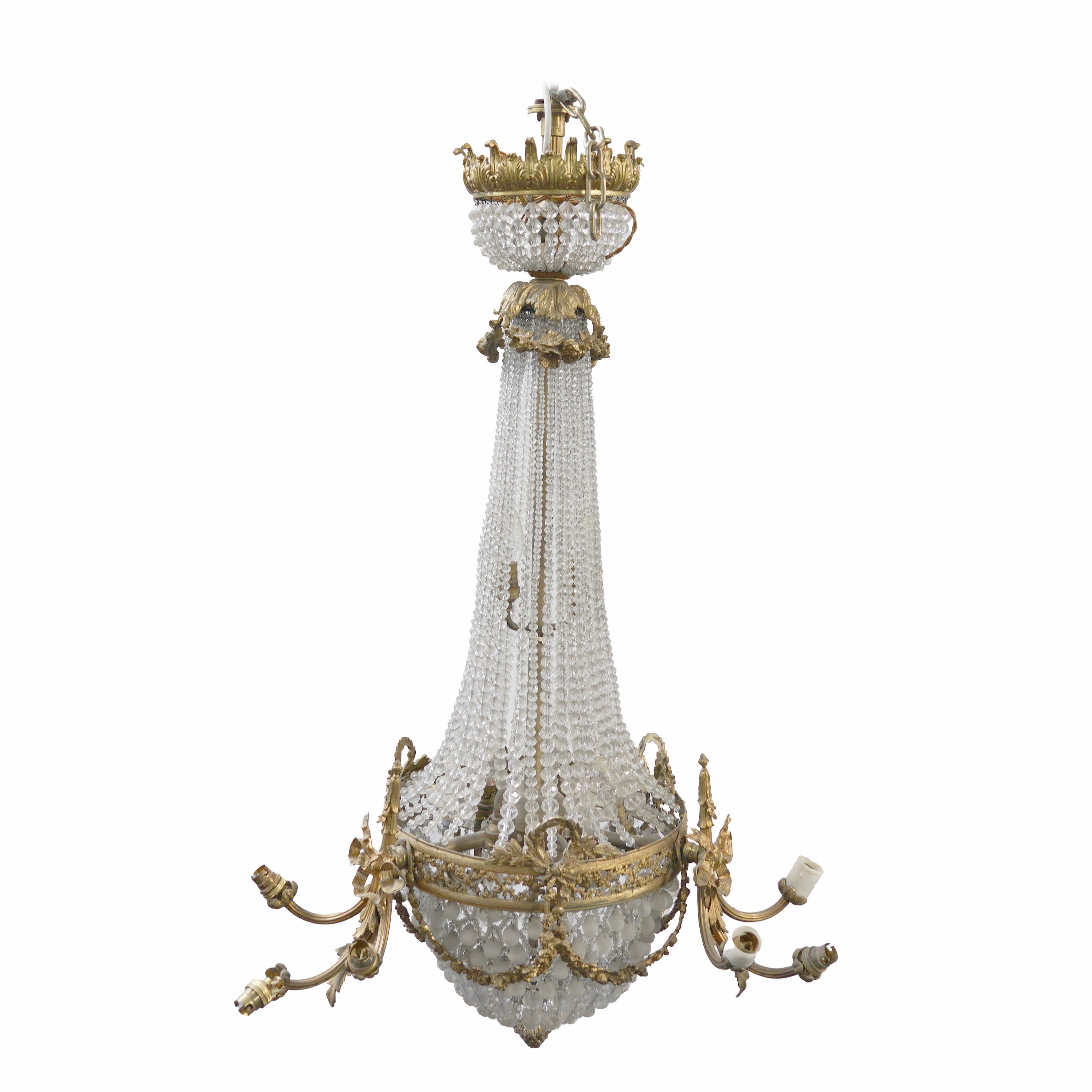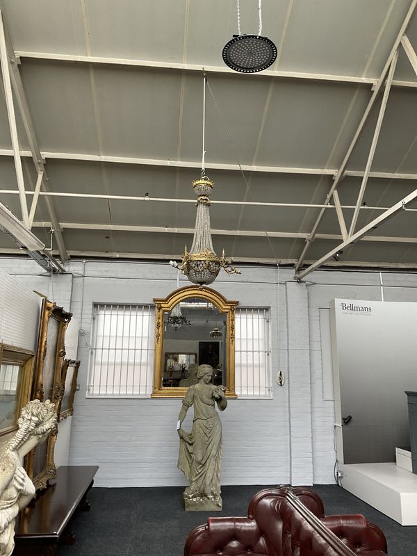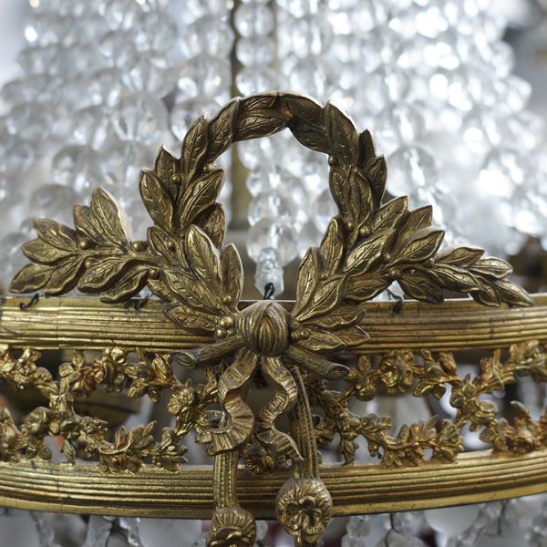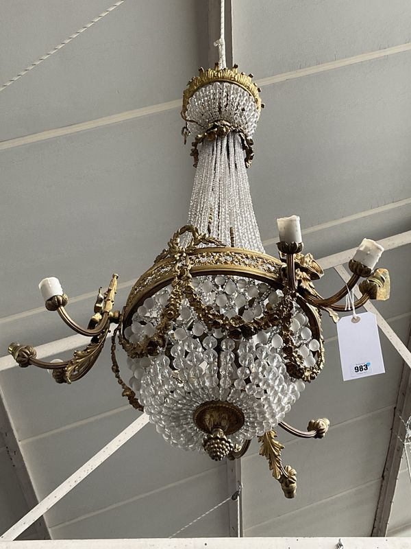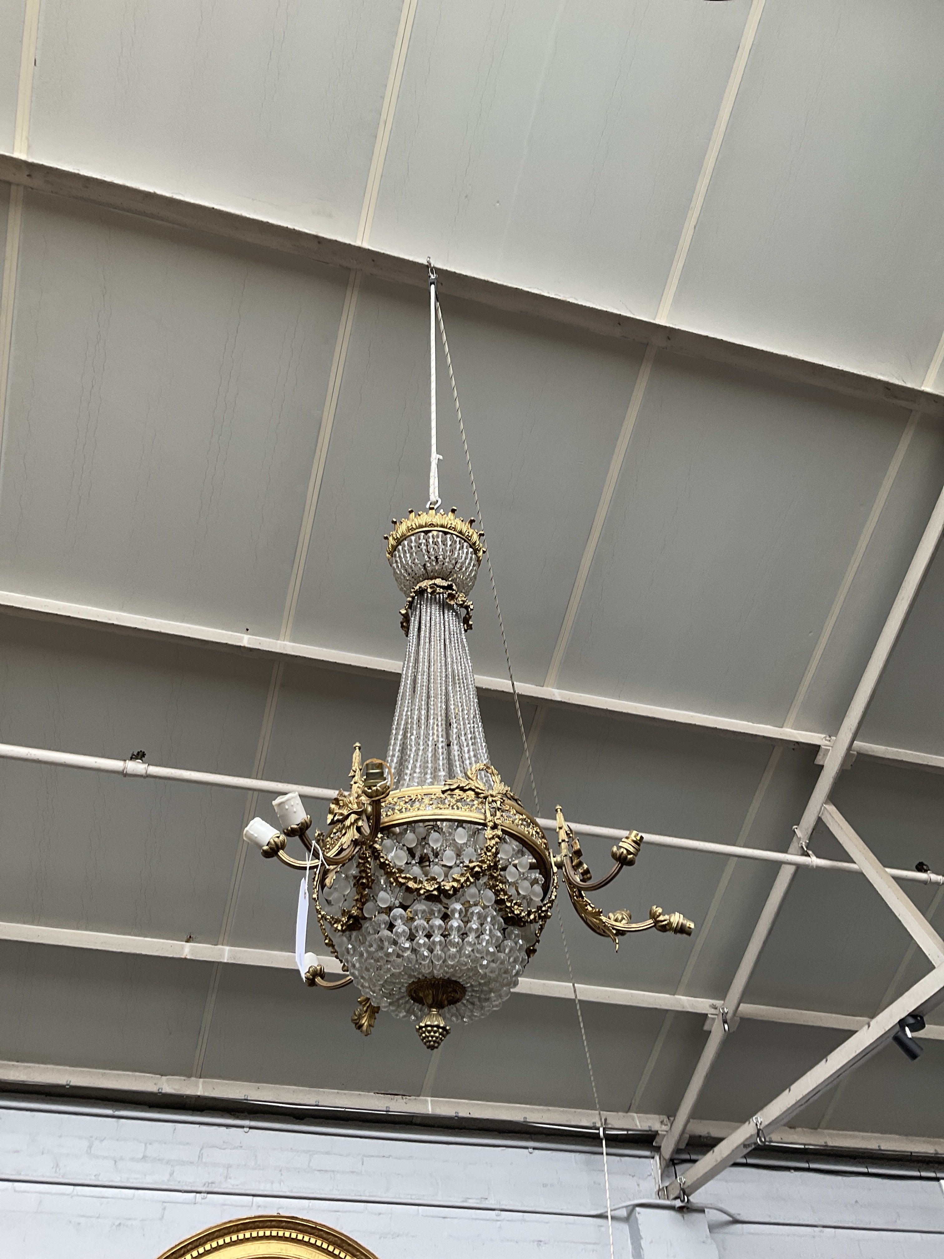 AN EMPIRE STYLE GILT METAL AND GLASS CHANDELIER