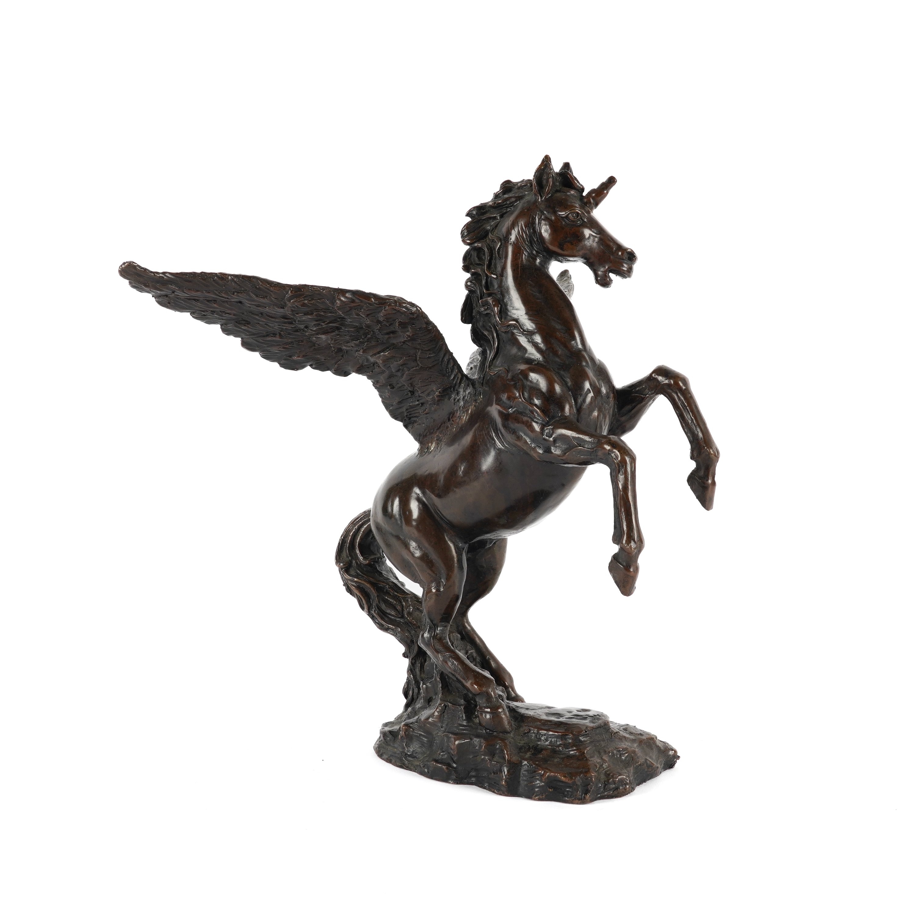 Modern The unicorn modelled rearing with wings outstretched, apparently unsigned, 41cm high