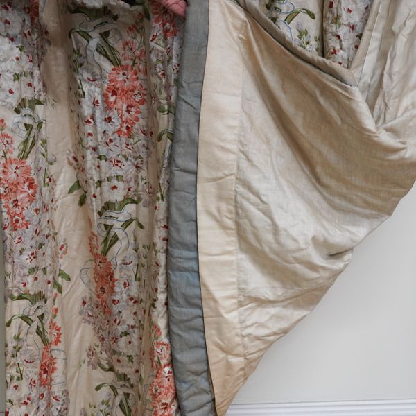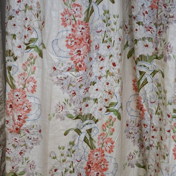 TWO PAIRS OF GLAZED COTTON FLORAL CHINTZ CURTAINS (8)