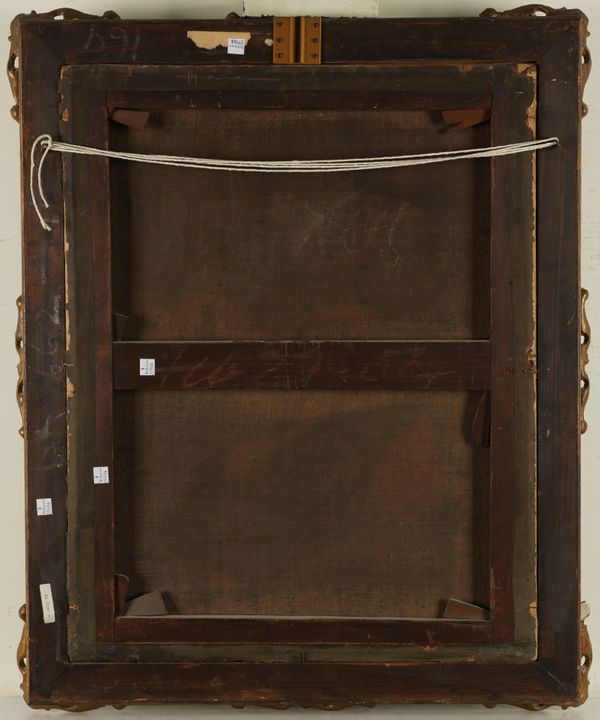 Canvas relined; traces of craquelure to paint surface, scratch to surface above gentleman's head, upper right; further small abrasion off the border, upper centre; traces of slightly discoloured varnish; ultraviolet reveals traces of inhaling to craquelure, upper right but the varnish prevents a conclusive reading.