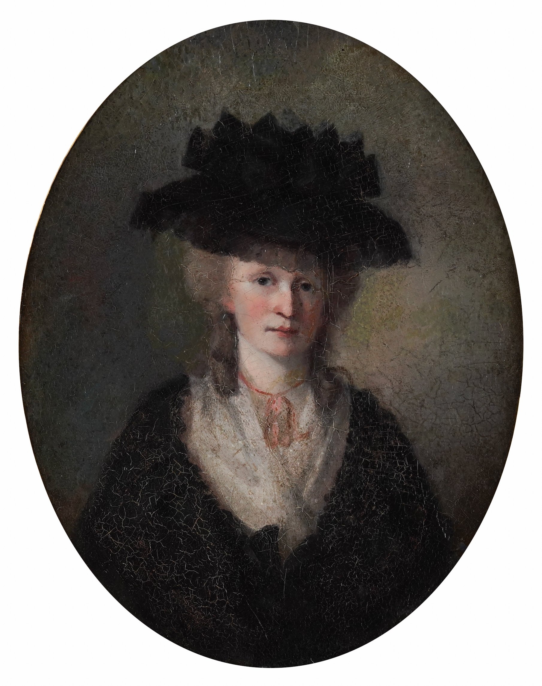 Portrait of a lady wearing a black hat, though to be Cordelia MacKay or Ellen Francis; Portrait of a lady wearing white, thought to be Julia MacKay, a pair