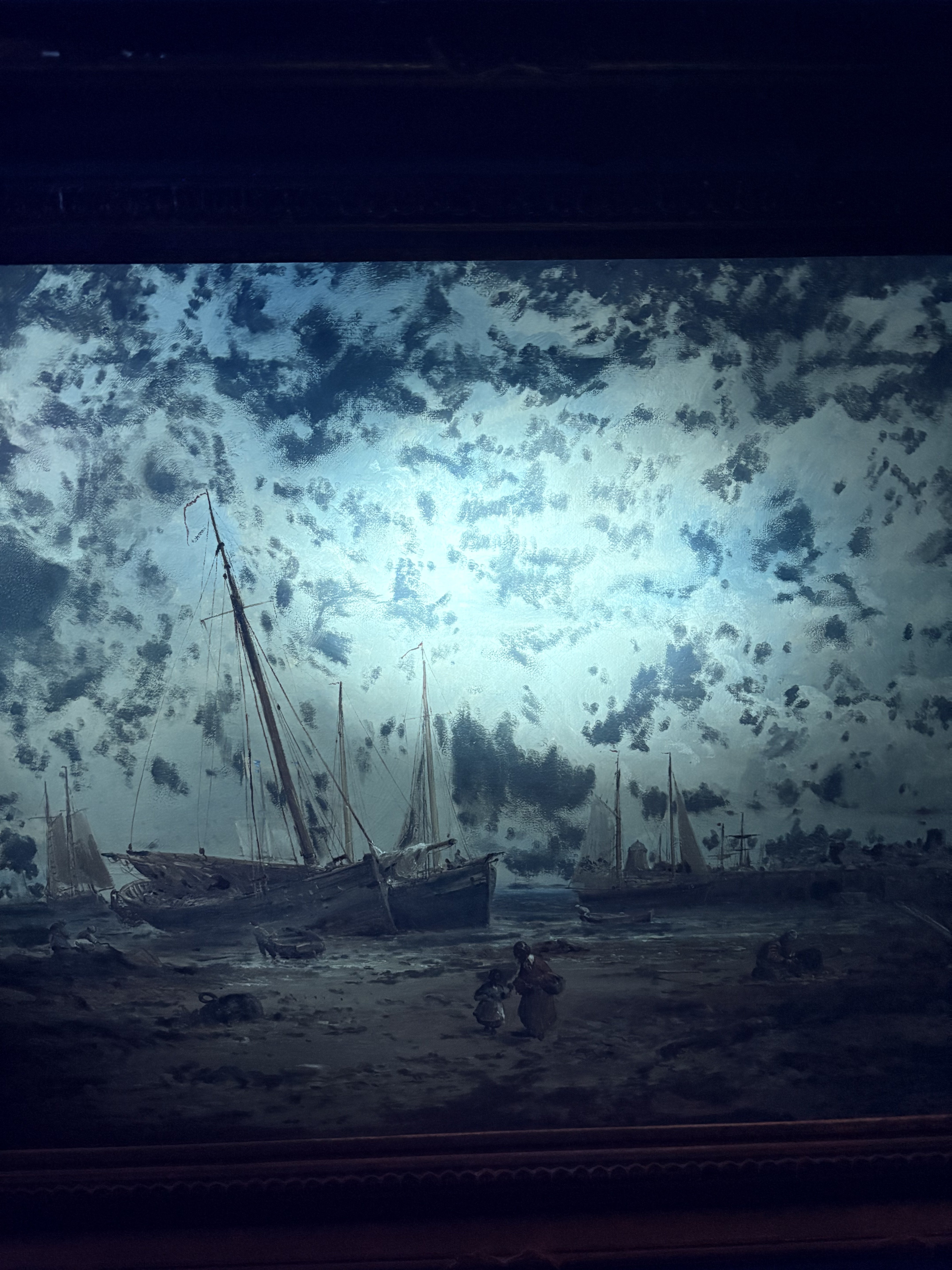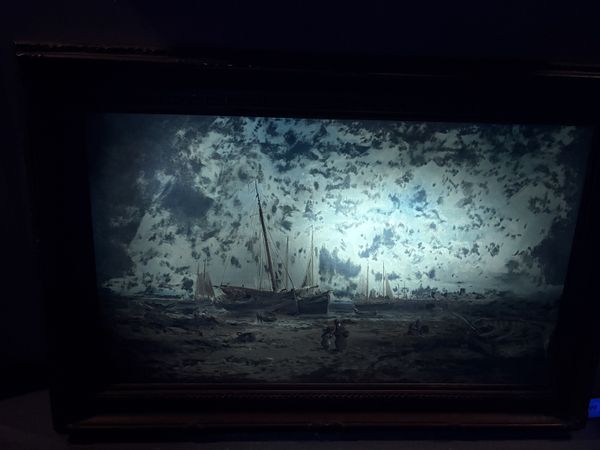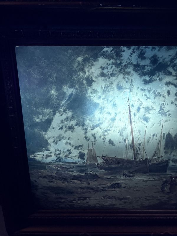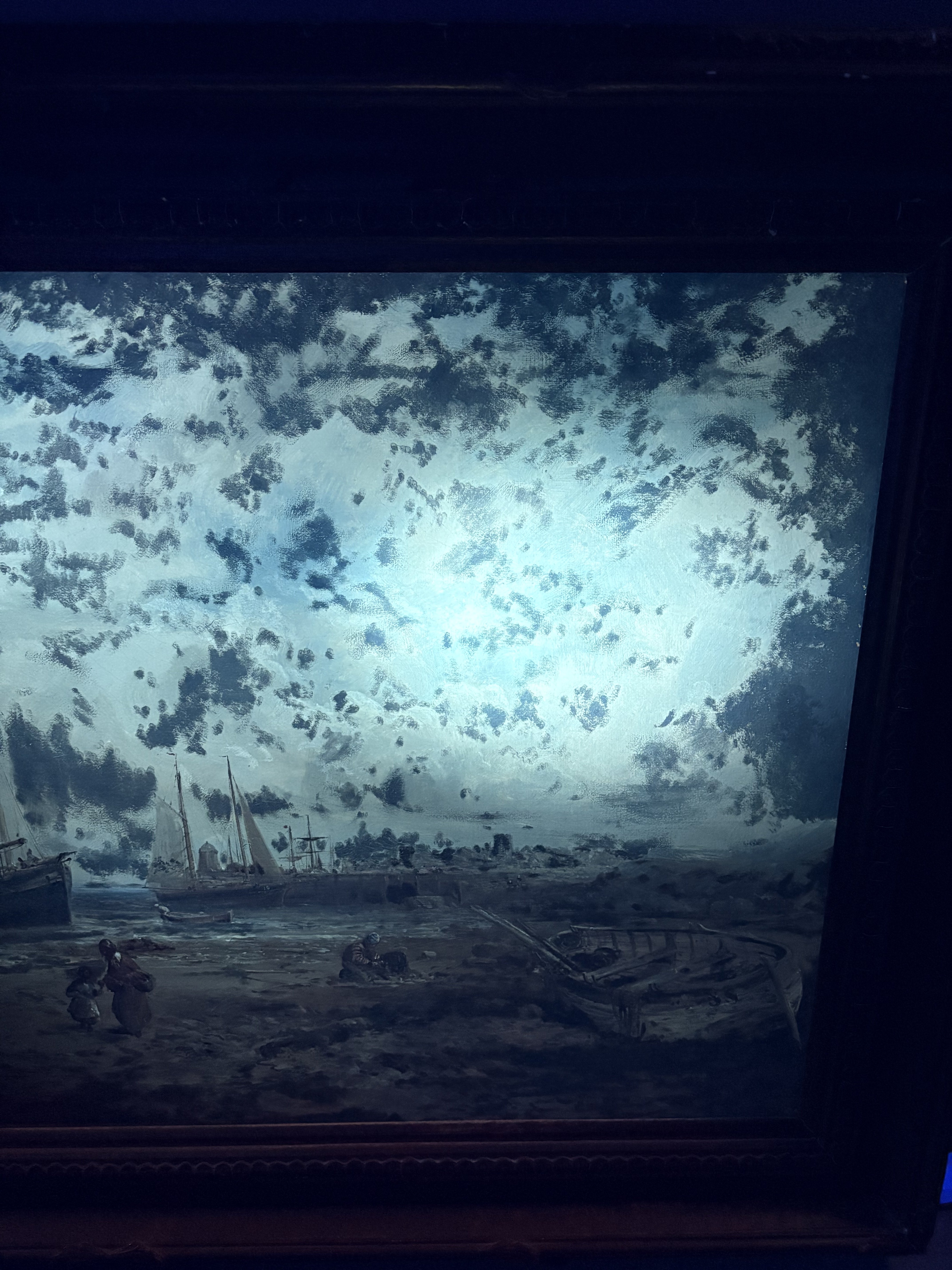 Inspection under uv light reveals fairly extensive retouching, mostly to upper half of picture. See additional photos.