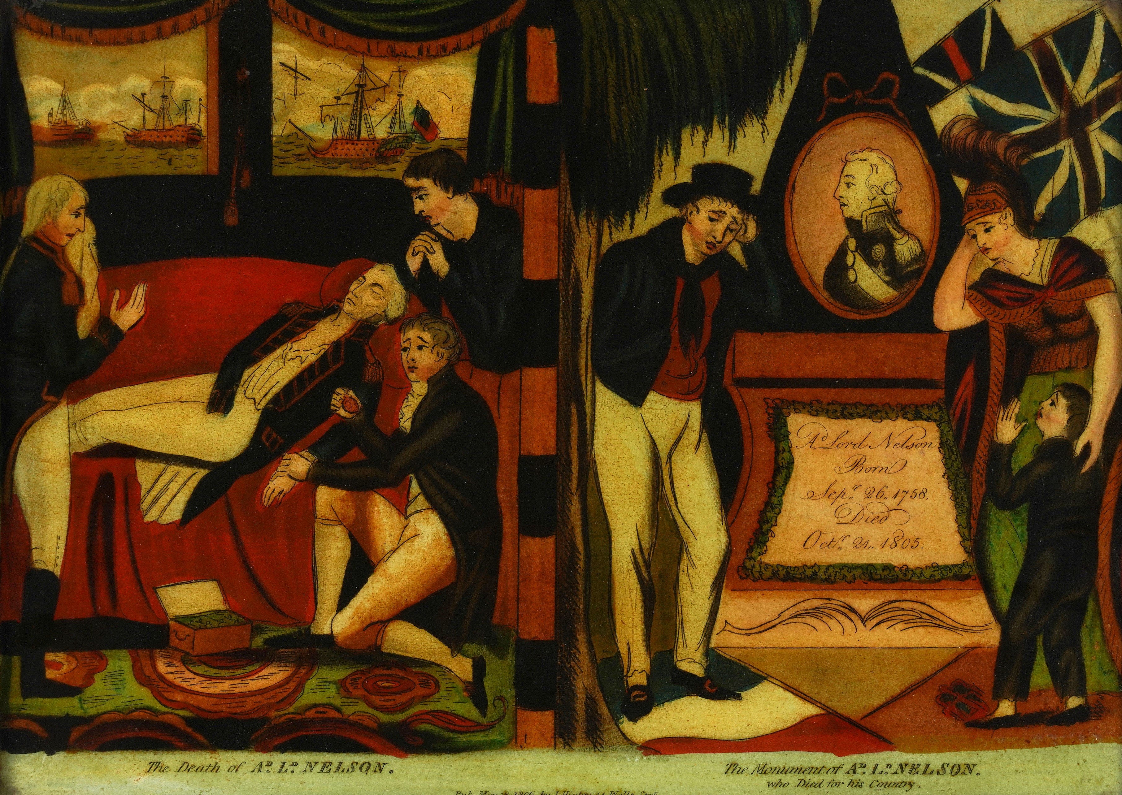 'The Death of Ad. Ld. Nelson The Monument of Ad. Ld. Nelson. who Died for his Country., Pub. May 18. 1806. by I. Hinton, 44 Wells St.'