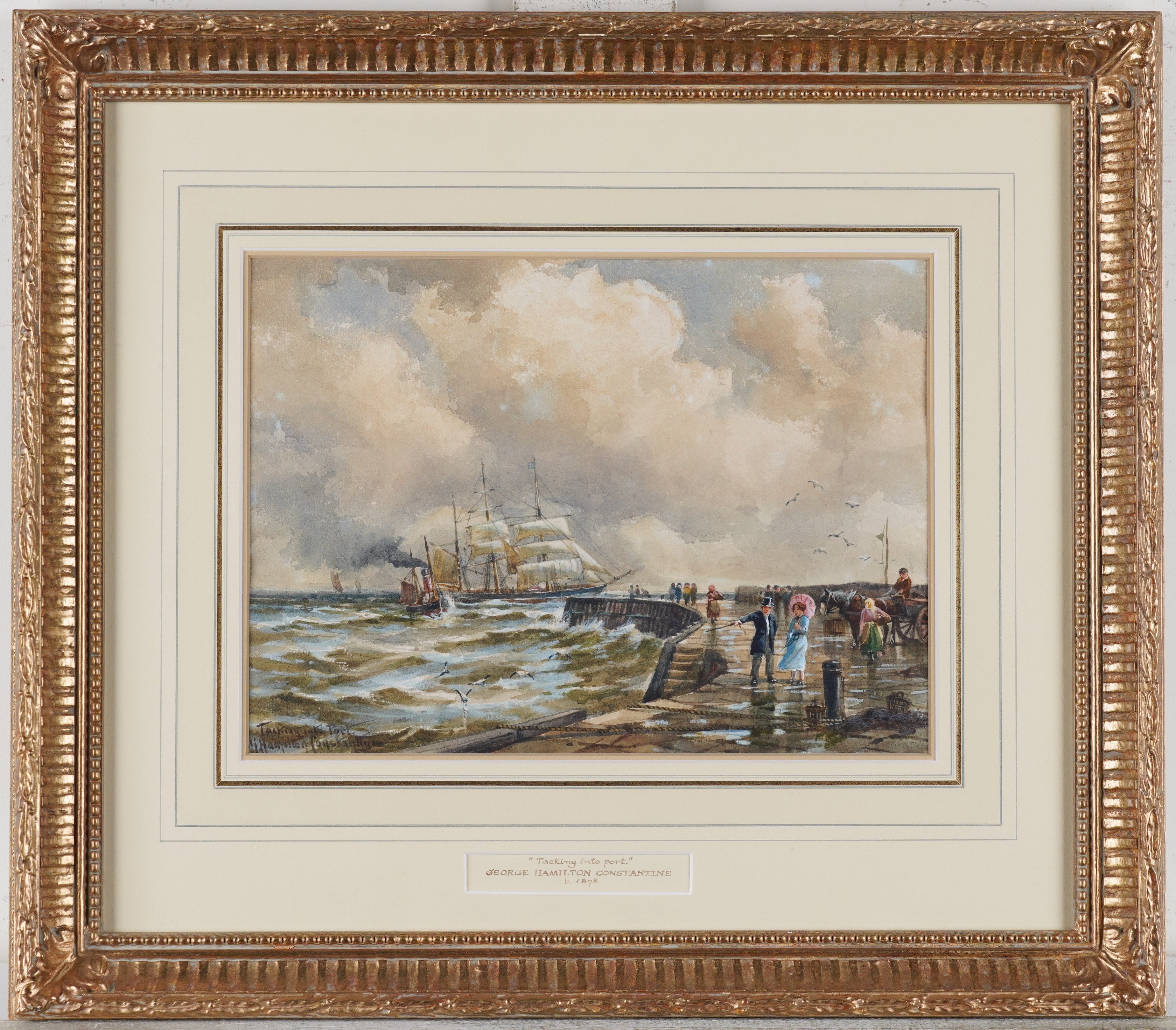 signed and titled 'G. Hamilton Constantine/ Tacking into port' (lower left)