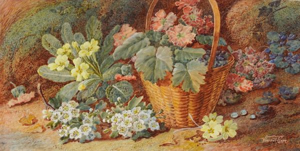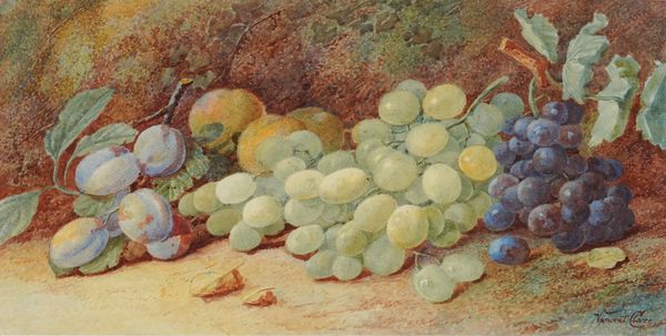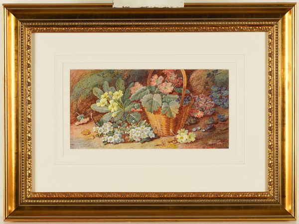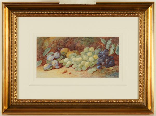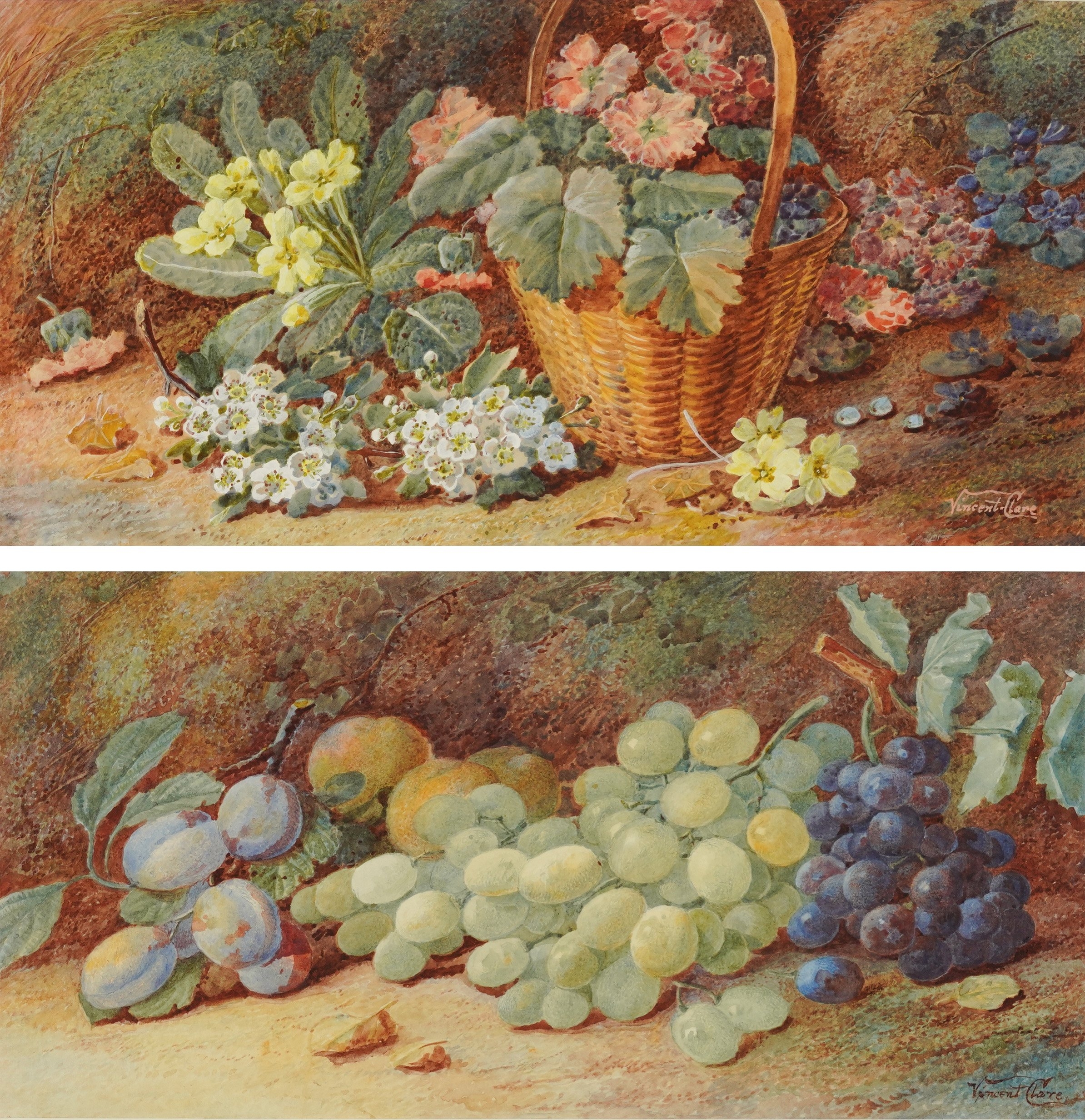 Still life of flowers with a basket; Still life of grapes and plums, a pair