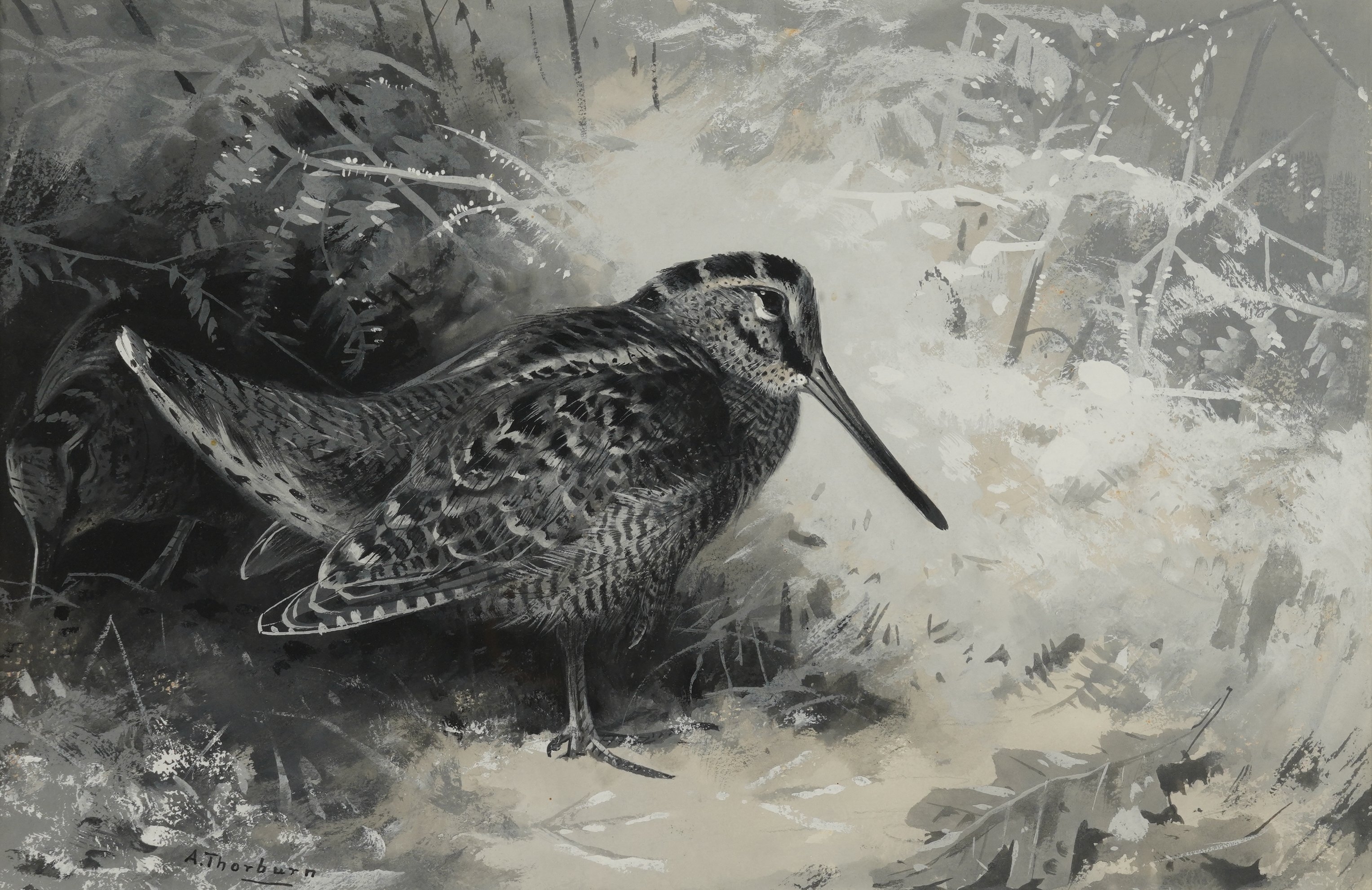 Woodcock signed 'A. Thorburn' (lower left) en grisaille 24.5 x 38cm Provenance Vicars Brothers, Old Bond Street, London; Private collection, UK