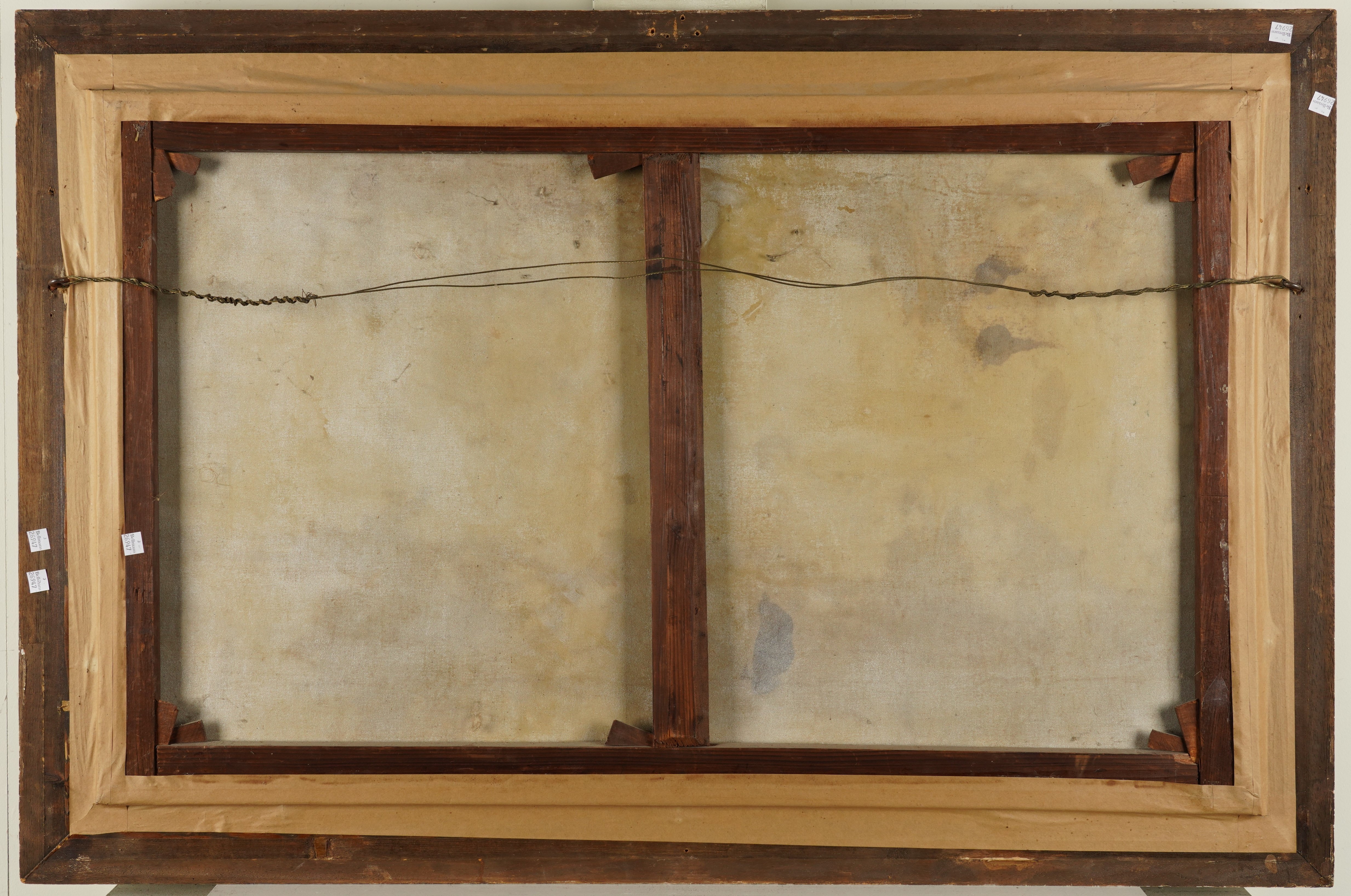 Canvas relined; traces of craquelure throughout, particularly in the sky, otherwise paint surface is sound; ultraviolet reveals patches of retouching to the sky and a few further areas to the water.