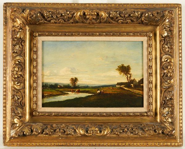 Landscape with fishermen signed 'Victor Dupre' (lower right) oil on board 16 x 24cm Provenance Private collection, UK