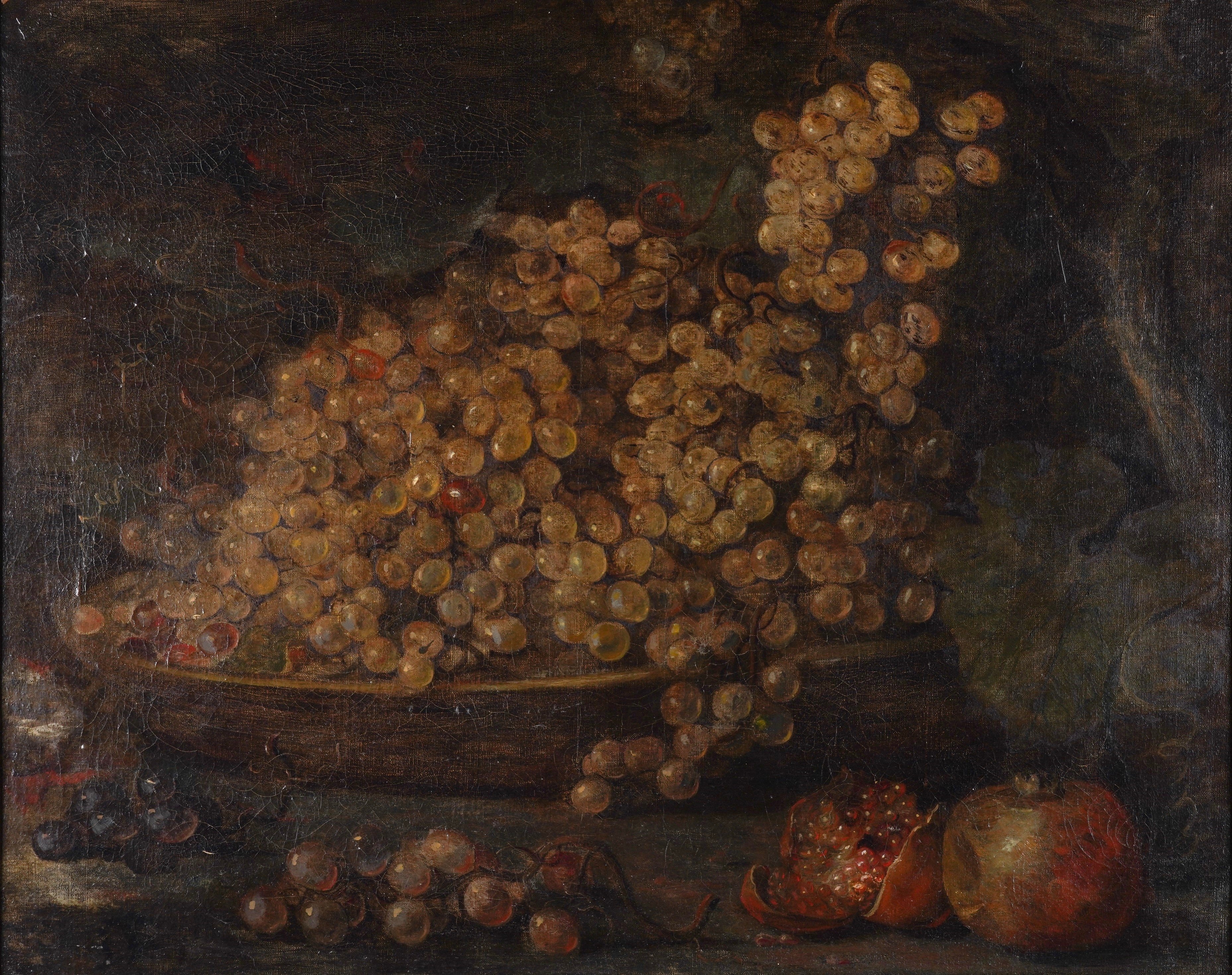 Still life of grapes and pomegranate oil on canvas 65.5 x 81cm Provenance Private collection, UK