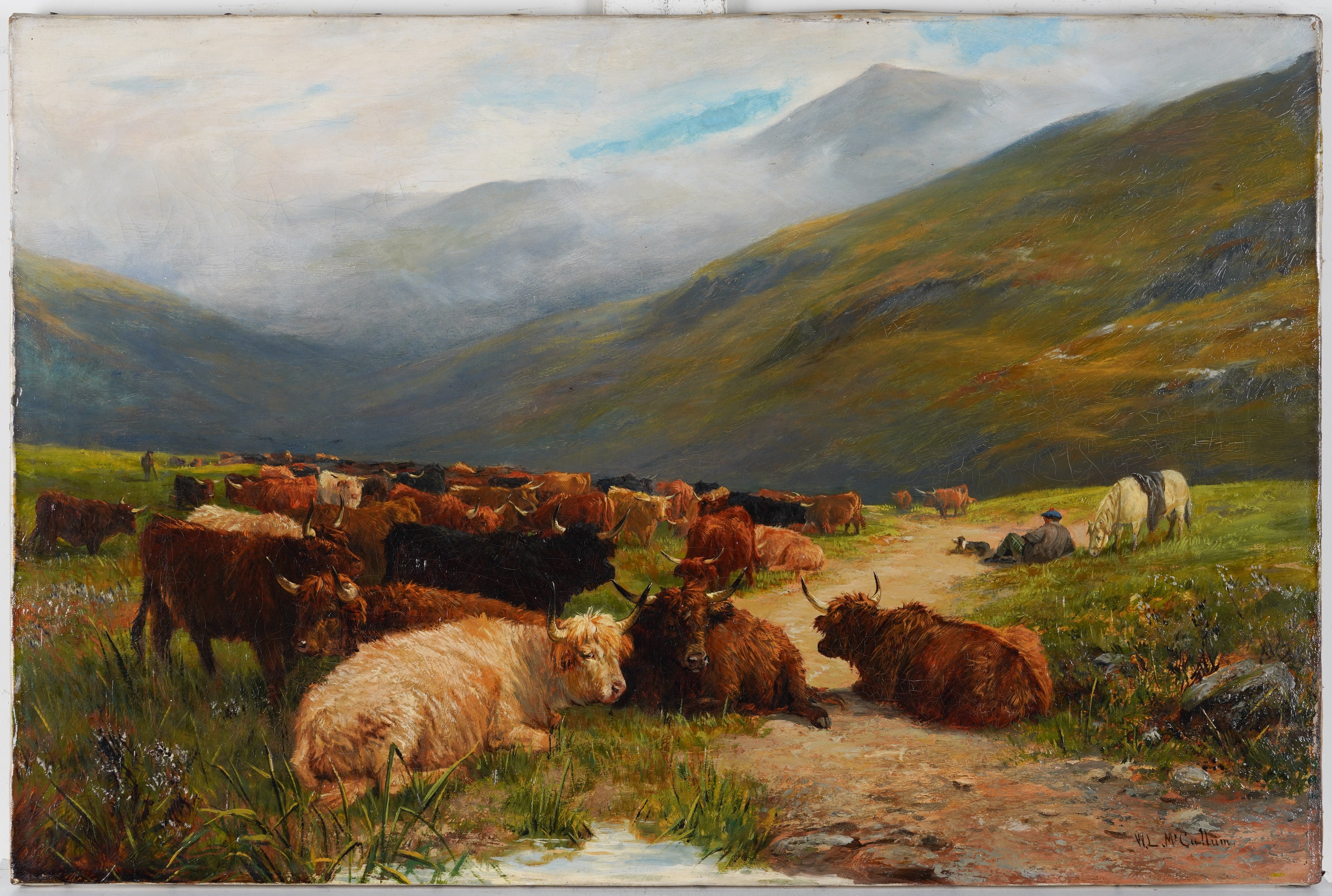 original canvas; three small patches to reverse, upper centre; craquelure to paint surface - stable; ultraviolet reveals three patches of retouching to sky and possible strengthening to signature.