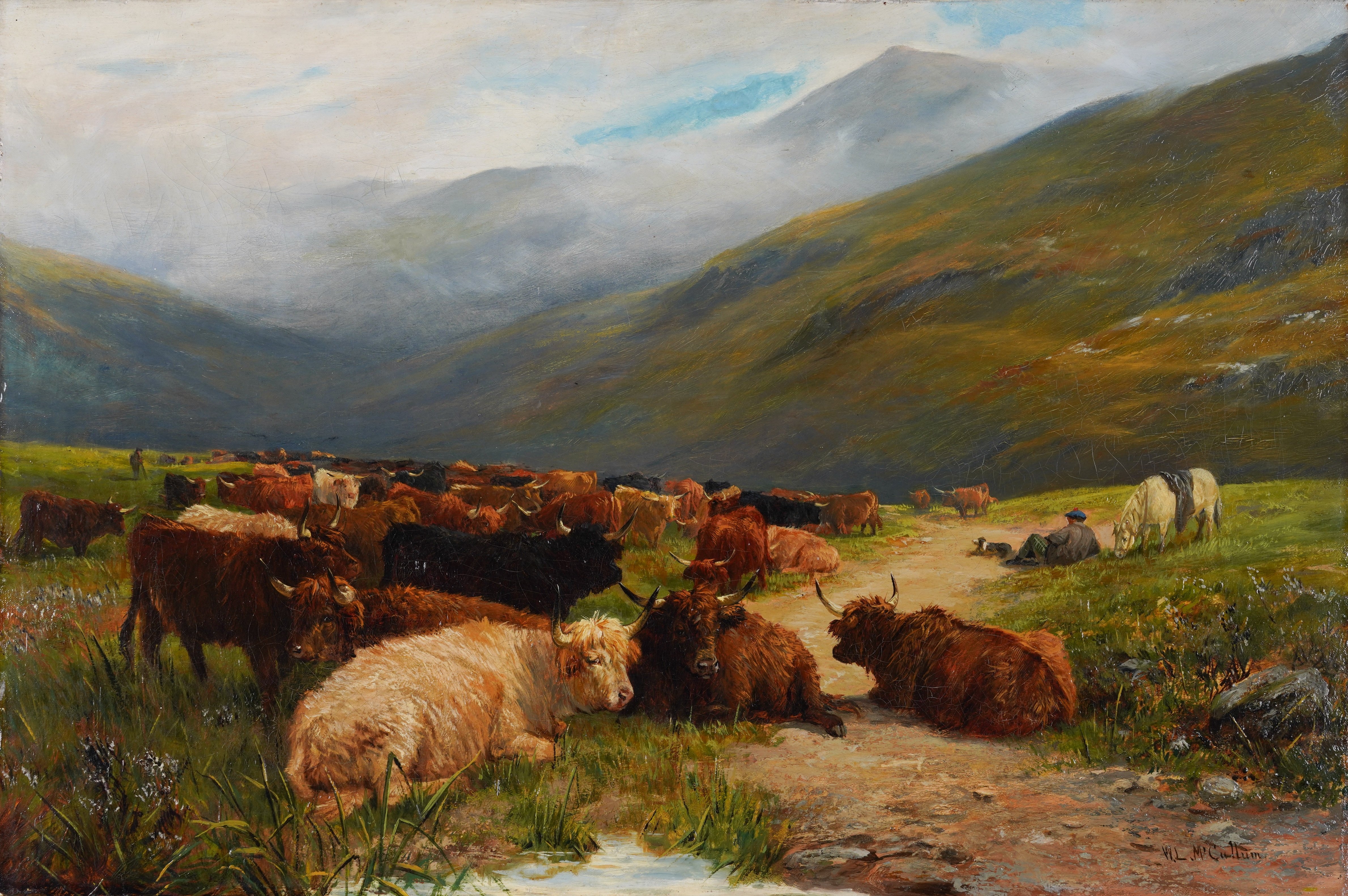 original canvas; three small patches to reverse, upper centre; craquelure to paint surface - stable; ultraviolet reveals three patches of retouching to sky and possible strengthening to signature.
