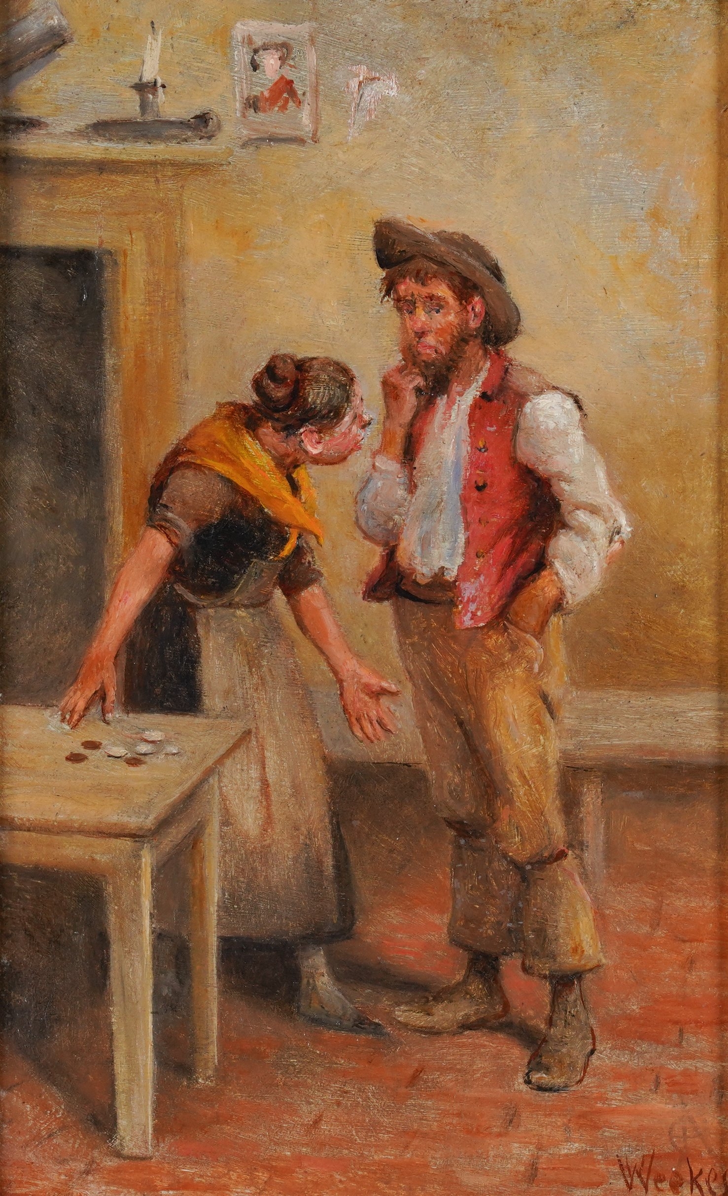 Did I Marry You for This? signed 'WWeekes' (lower right) oil on board 25.5 x 16cm Provenance Private collection, UK