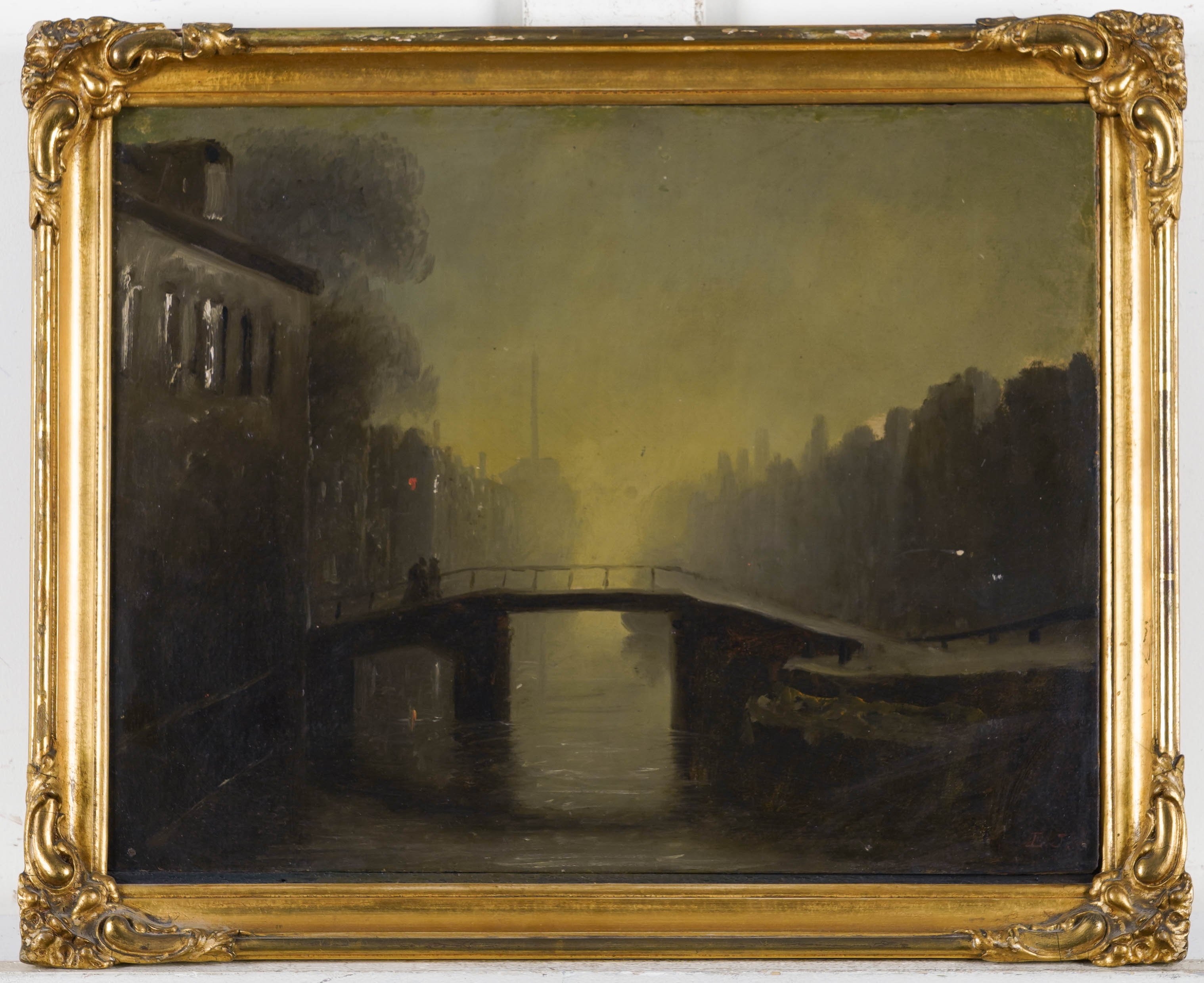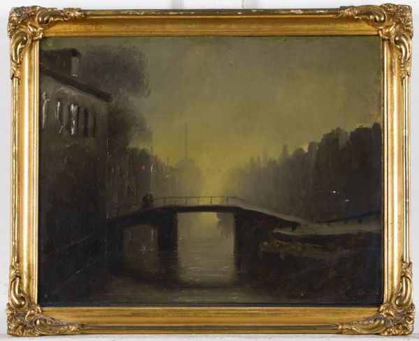 This nocturnal scene almost certainly portrays a bridge in The Hague, and dates from the 1850s, when Eastman Johnson was studying there and coming under the influence of the great Dutch Masters of the 17th century such as Rembrandt.