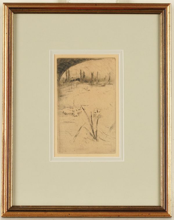 The Swan and Iris etching 13 x 8cm Provenance Private collection, UK