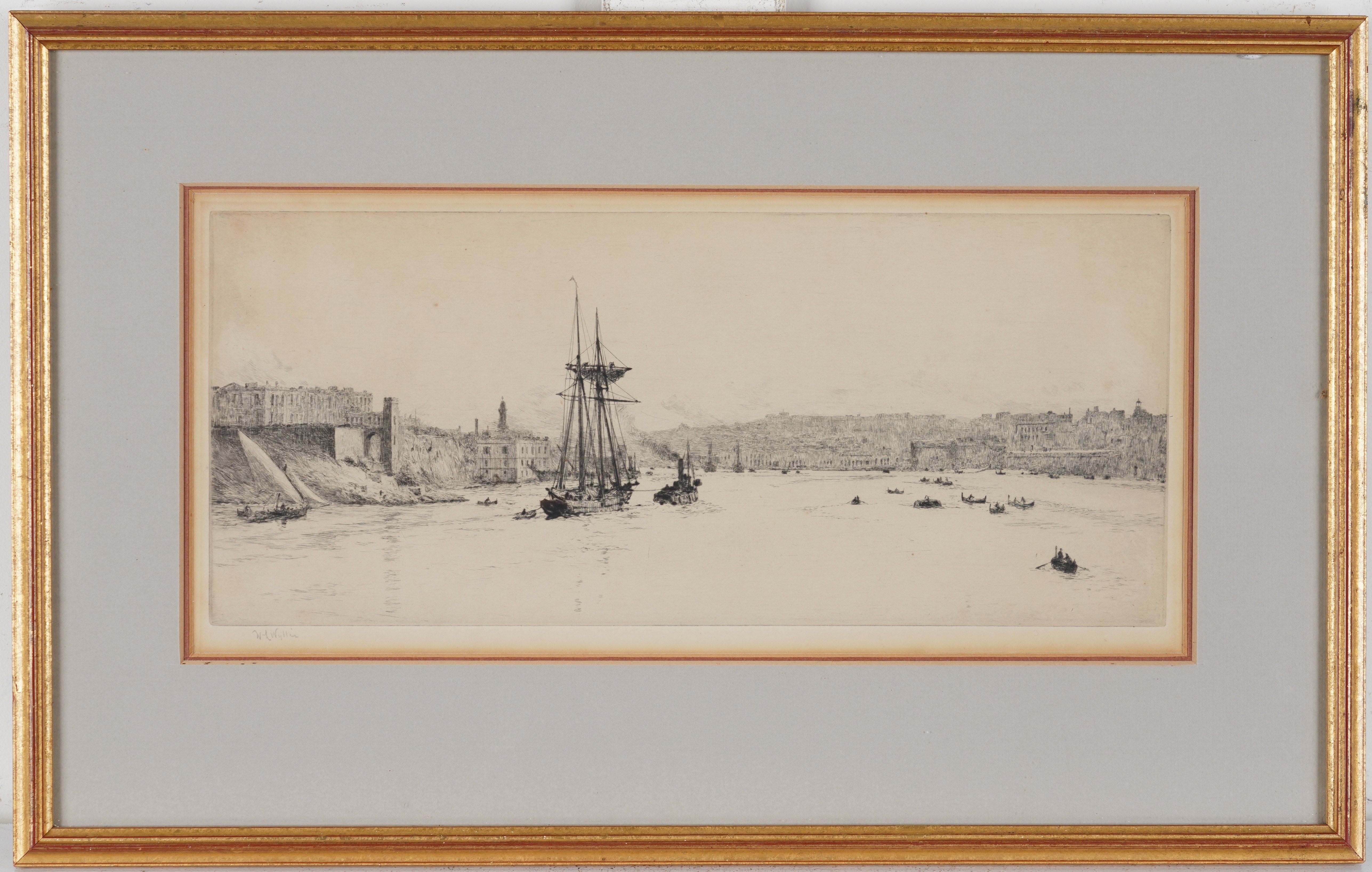 Grand Harbour, Valetta, Malta signed in pencil 'W L Wyllie' (in lower margin) etching 16 x 38cm Provenance Private collection, UK
