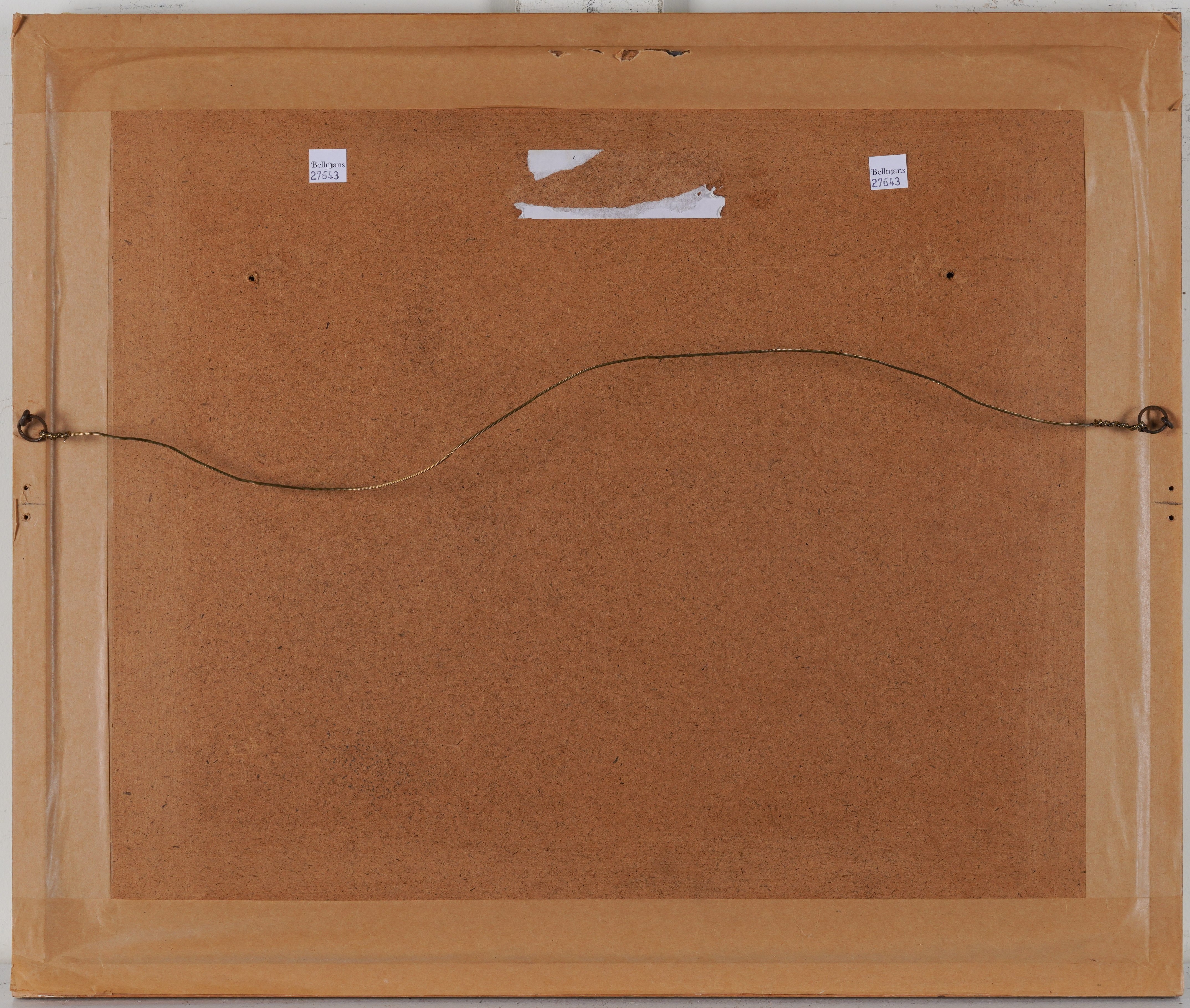 The sheet is sound; a couple of media spots in the sky, upper left, otherwise good original condition with strong colour; framed and under glass, unexamined out of frame.