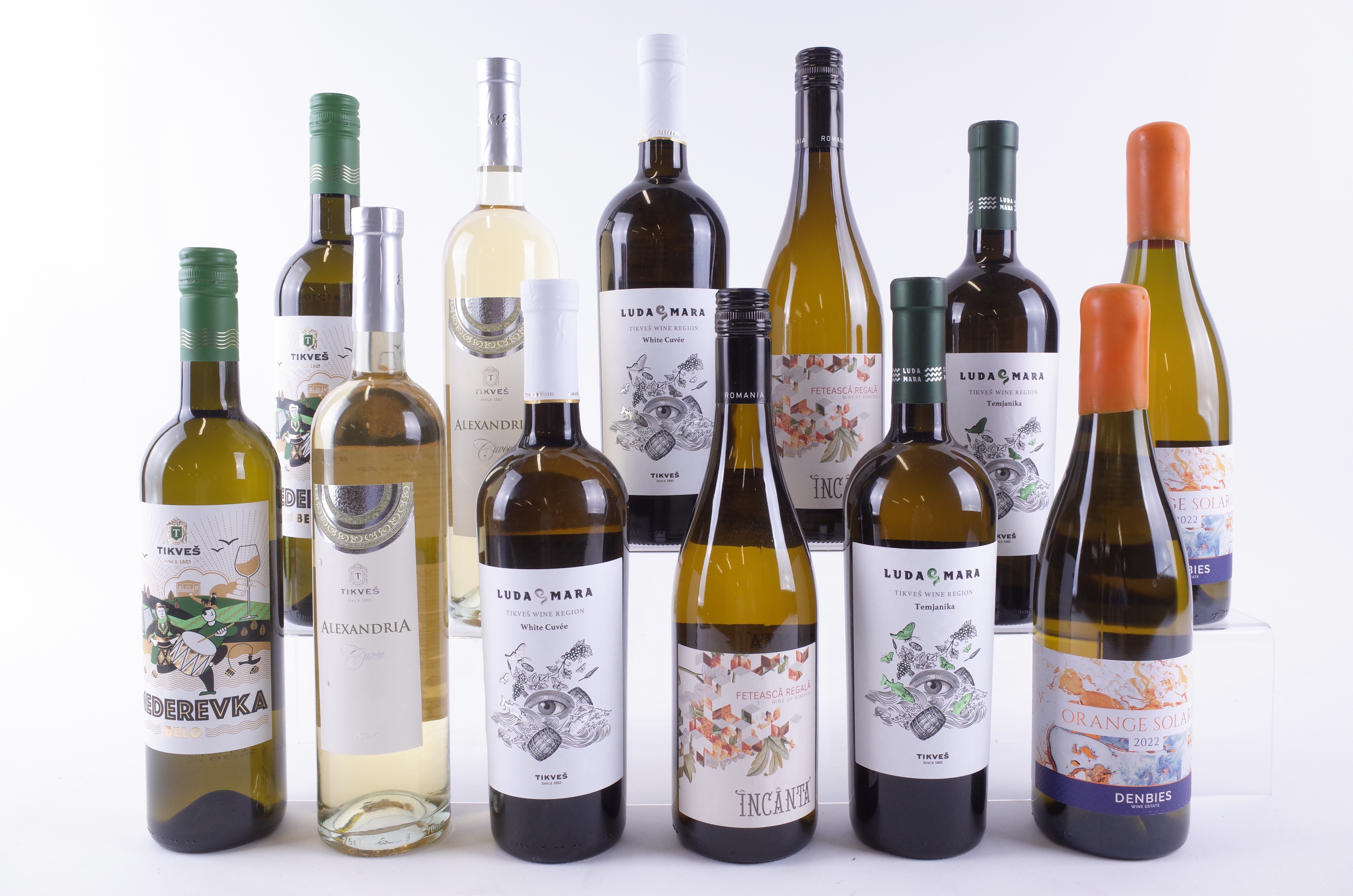 Tikves Winery 2 x Smederevka 2024, 2 x Alexandria Cuvée 2024, Luda Mara Temjanika 2024 and 2 x Luda Mara Cuvée 2024; Cramele Recas 2 x Incanta Feteasca Regala 2023; Denbies Wine Estate 2 x Orange Solaris 2022