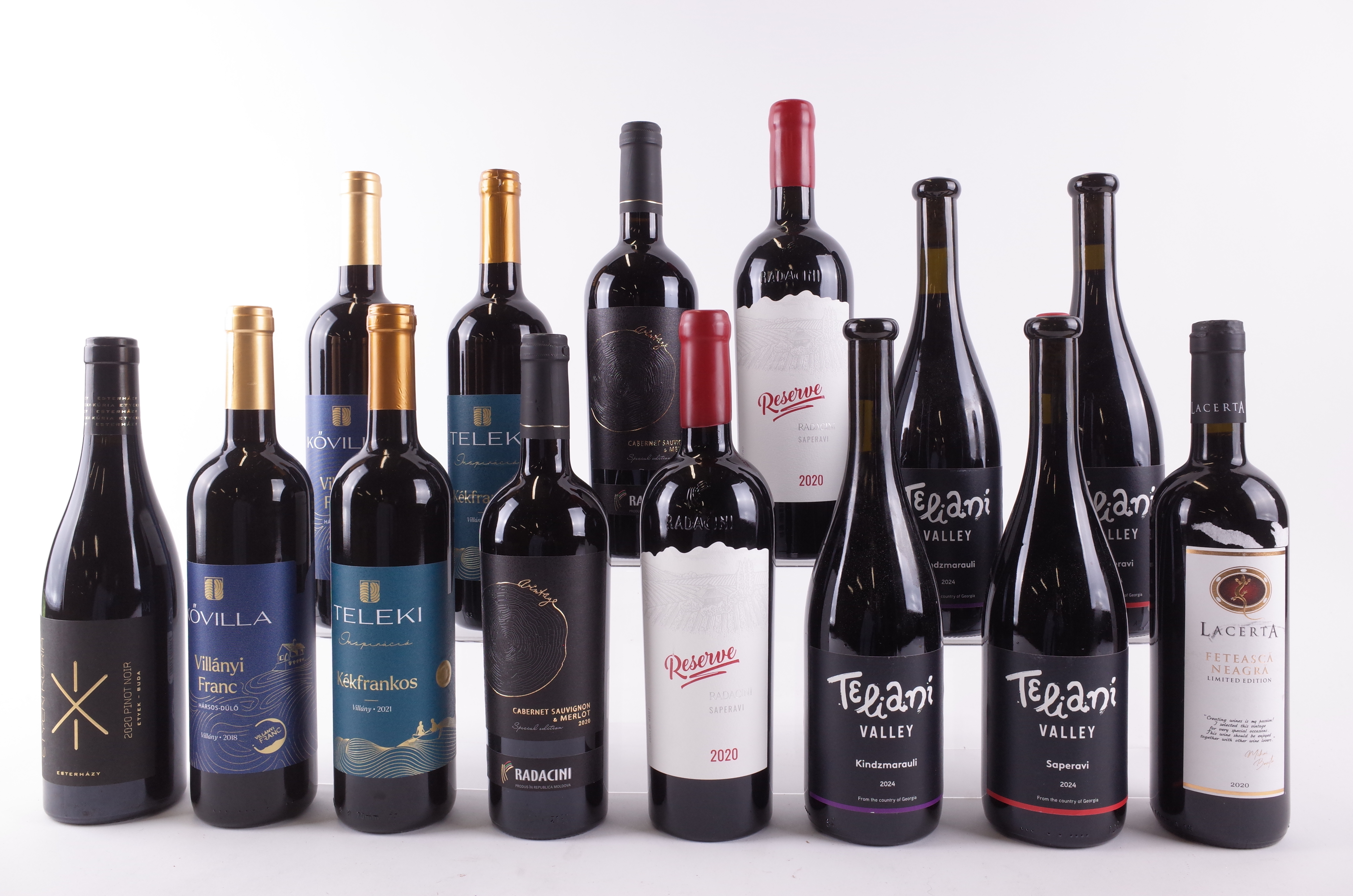 Etyeki Kuria Selection Pinot Noir 2020; Lacerta Limited Edition Feteasca Neagra 2020; Csányi Pinceszet 2 x Kóvilla Villányi Franc 2018 and 2 x Teleki Inspiráció Kékfrankos 2021; Radacini Wines 2 x Cabernet Sauvignon-Merlot 2020 and 2 x Reserve Saperavi 2020; Teliani Valley 2 x Winery97 2024 and 2 x Winery97 Saperavi 2024