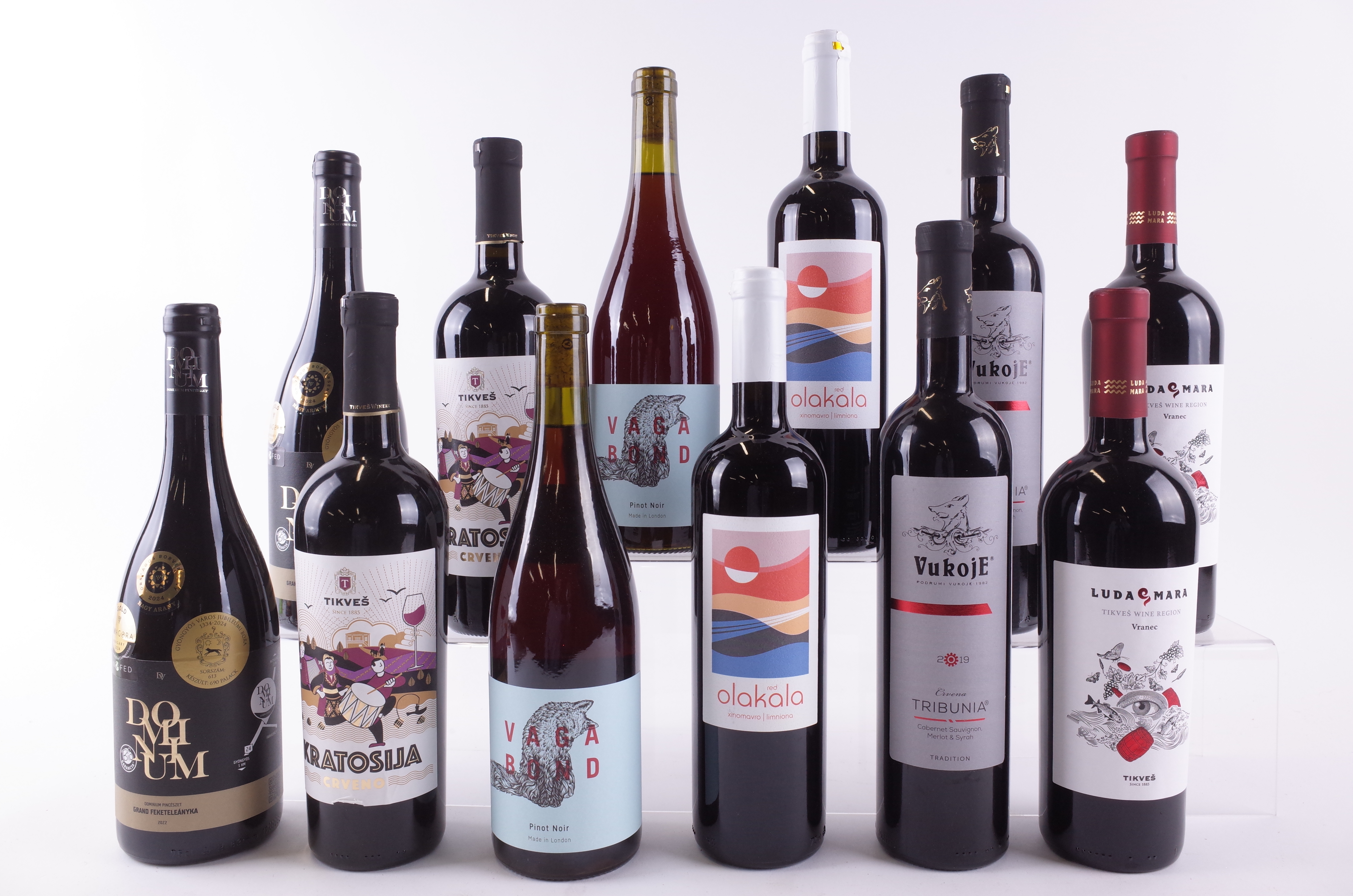 Vinum Dominium 2 x Grand Feketeleányka 2022; Tikves Winery 2 x Kratosija 2022 and 2 x Luda Mara Vranec 2022; Vagabond Wines 2 x Pinot Noir 2023; Nikos Karatzas 2 x Olakala Xinomavro-Limniona 2023; Podrumi Vukoje 1982 2 x Tribunia Crvena Cabernet Sauvignon Merlot Syrah 2019