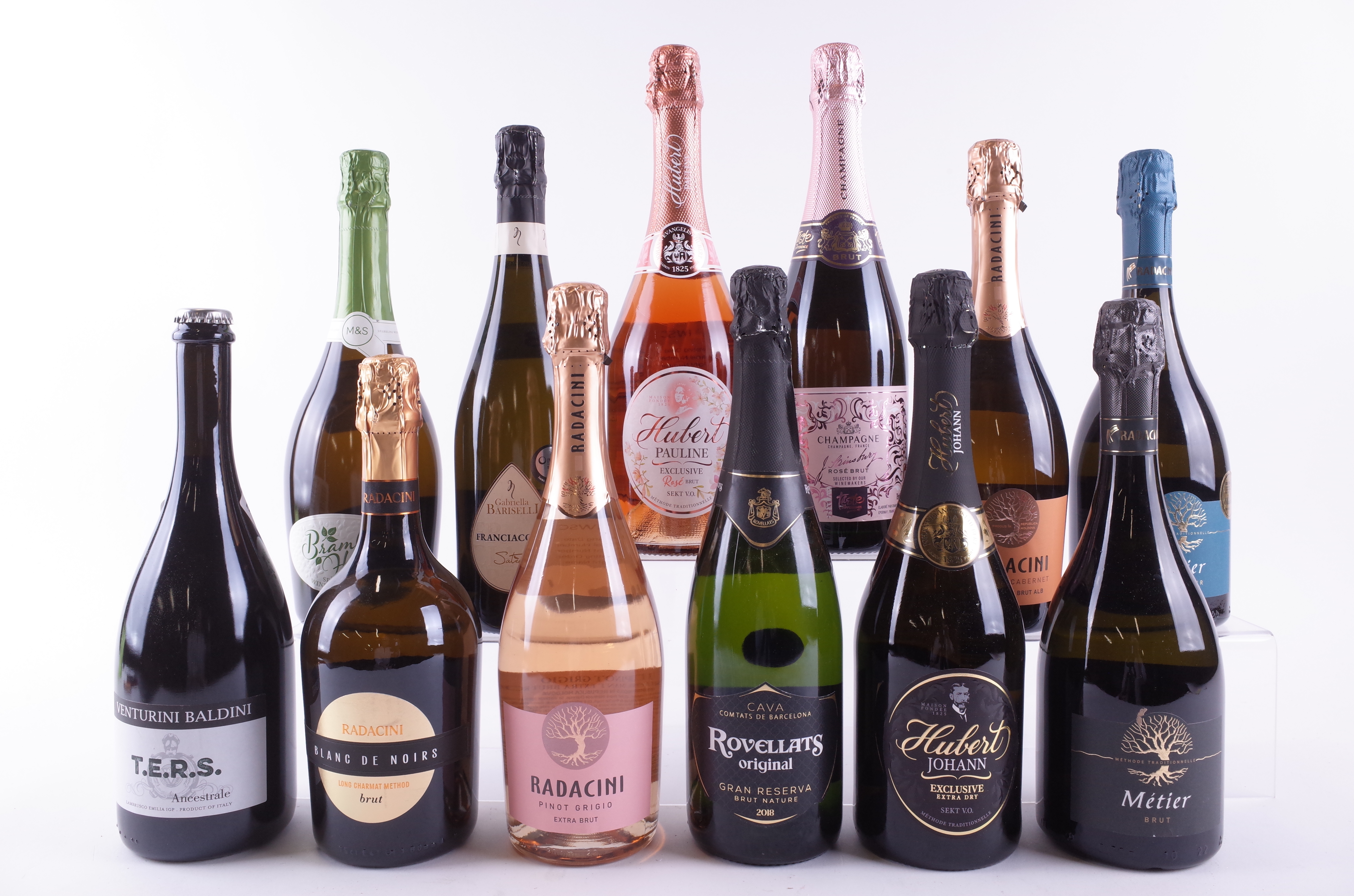 Venturini Baldini TERS Ancestrale Lambrusco Emilia; Radacini Blanc de Noirs Brut, Blanc de Cabernet and Pinot Grigio Extra Brut; Rovellats Cava Gran Reserva 2018; Hubert Johann Exclusive Extra Dry and Hubert Pauline Exclusive Rosé Brut; Gabriella Bariselli Franciacorta Satèn; Métier Brut and Brut Natur; M+S Bramble Hill Brut; Sainsbury's Taste The Difference Champagne Rosé Brut