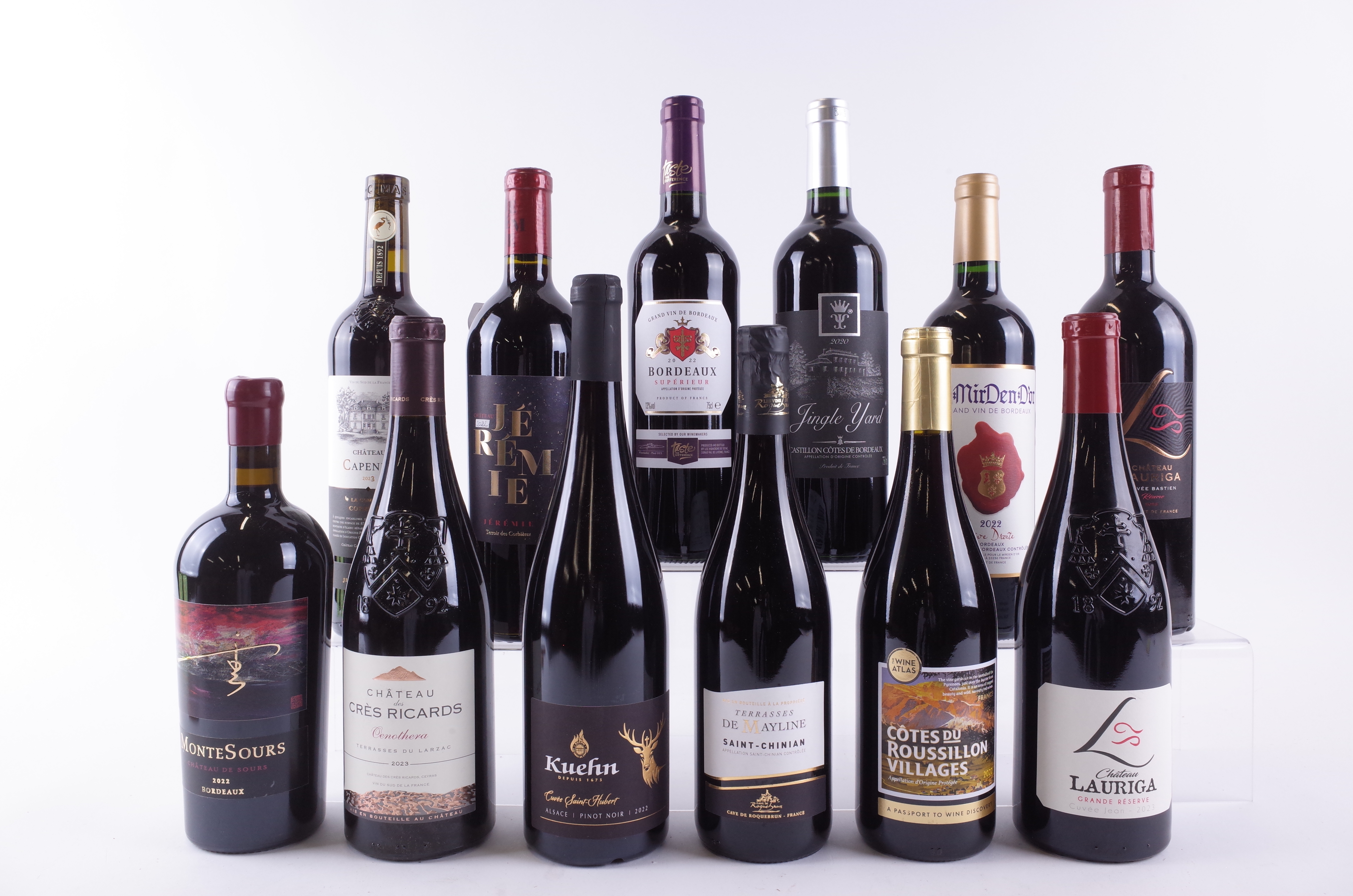 Montes Sours Bordeaux 2022; Château des Crès Richards Oenothera 2023; Keuhn Cuvée Saint-Hubert Pinot Noir 2022; Cave de Roquebrun Terrassess de Mayline Saint-Chinian 2024; Asda Côtes du Roussillon Villages 2022; Château Lauriga Grande Réserve Cuvée Jean 2023 and Cuvée Bastien Reserve 2023; Jean-Claude Mas Château Capendu 2023; Château Jérémie Corbières 2022; Sainsbury's Taste The Difference Bordeaux Supérieur 2022; Jingle Yard Castillon Côtes de Bordeaux 2020; Le Mir Den D'or Rive Droite Bordeaux 2022