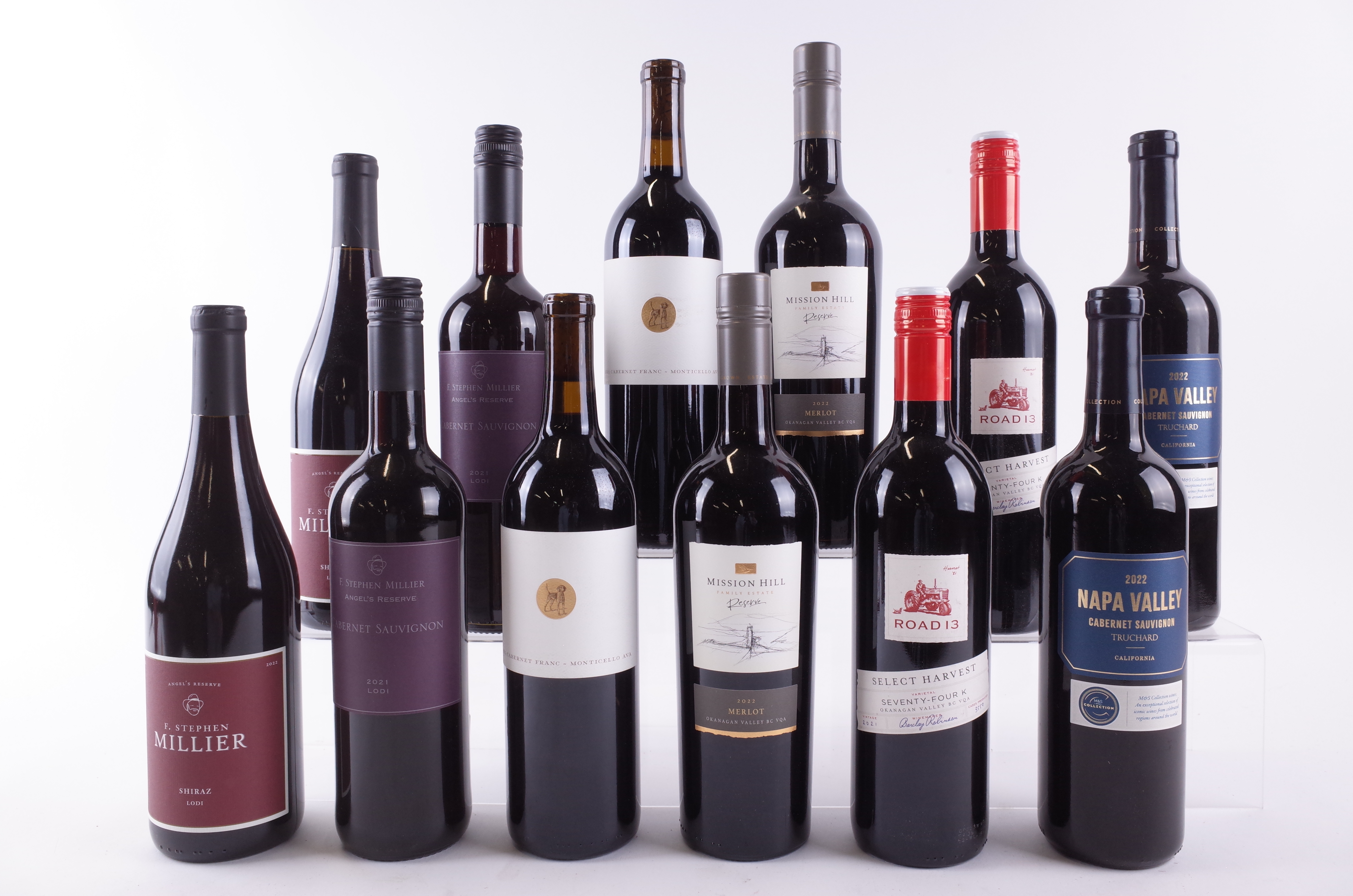 F Stephen Millier 2 x Angel's Reserve Shiraz 2022 and 2 x Angel's Reserve Cabernet Sauvignon 2021; Southwest Mountains Vineyards 2 x Cabernet Franc 2021; Mission Hill Family Estate Winery 2 x Reserve Merlot 2022; Road 13 Vineyards 2 x Select Harvest Seventy-Four K 2021; Marks + Spencer 2 x Collection Truchard Cabernet Sauvignon 2022