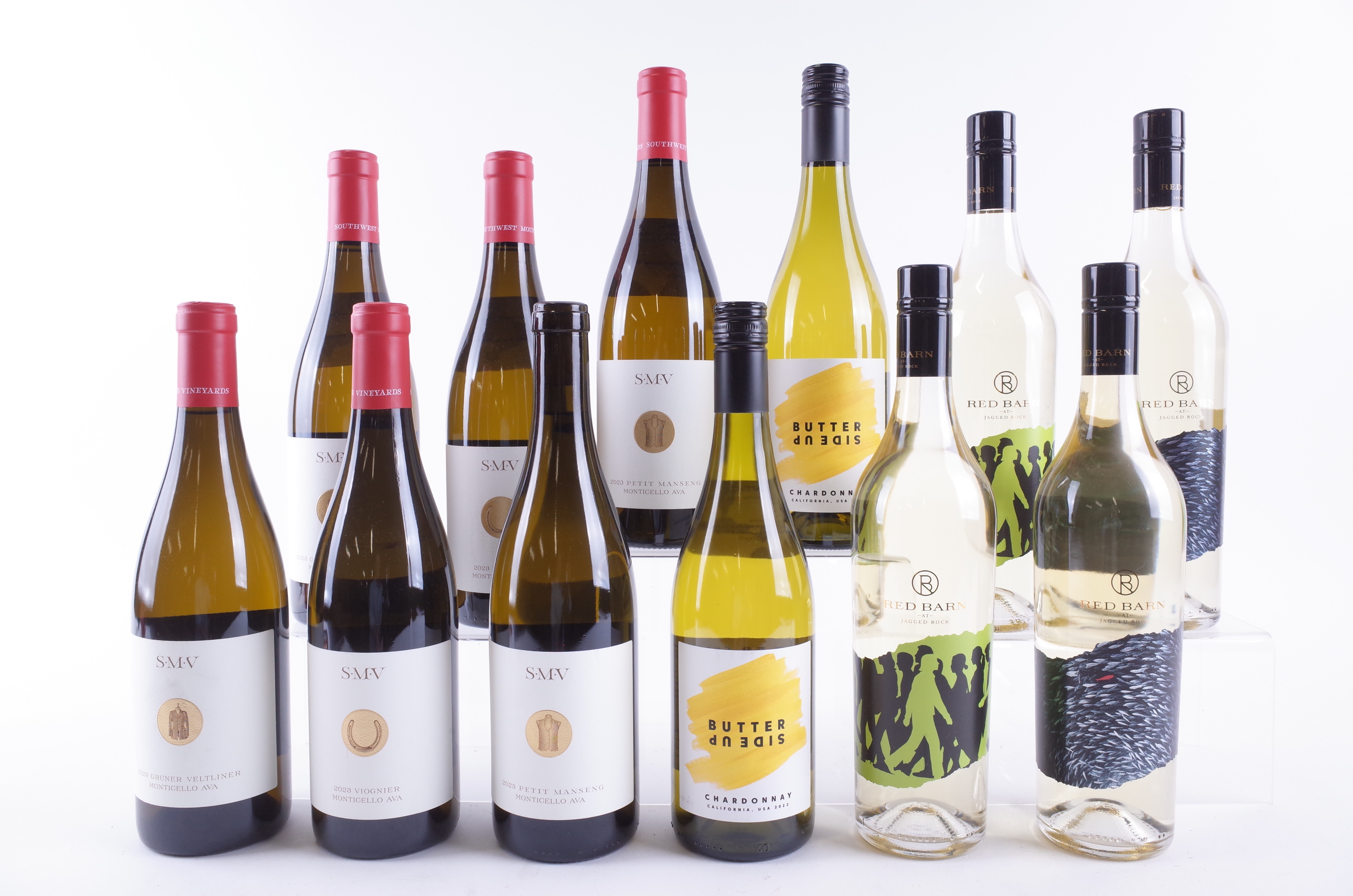 Southwest Mountains Vineyards 2 x Gruner Veltliner 2023, 2 x Viognier 2023 and 2 x Petit Manseng 2023; Asda 2 x Butter Side Up Chardonnay 2022; Red Barn Winery 2 x Stand Apart Chenin Blanc 2023 and 2 x Discordian Blend 2023