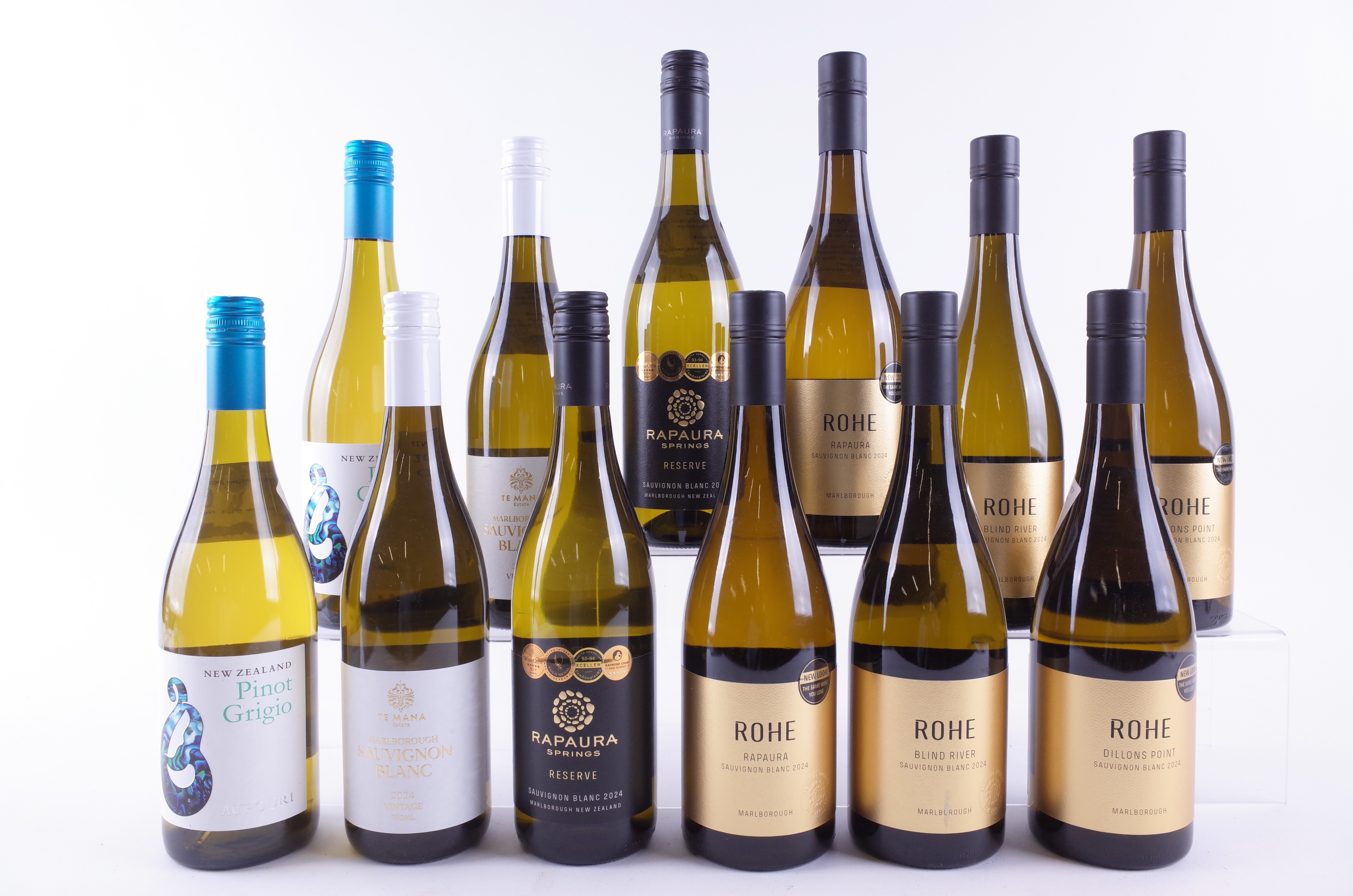 Groco 2 x Aupouri Pinot Grigio 2023; Te Mana Estate 2 x Sauvignon Blanc 2024; Rapaura Springs 2 x Reserve Sauvignon Blanc 2024, 2 x Rohe Sauvignon Blanc 2024, 2 x Rohe Blind River Sauvignon Blanc 2024 and 2 x Rohe Dillons Point Sauvignon Blanc 2024