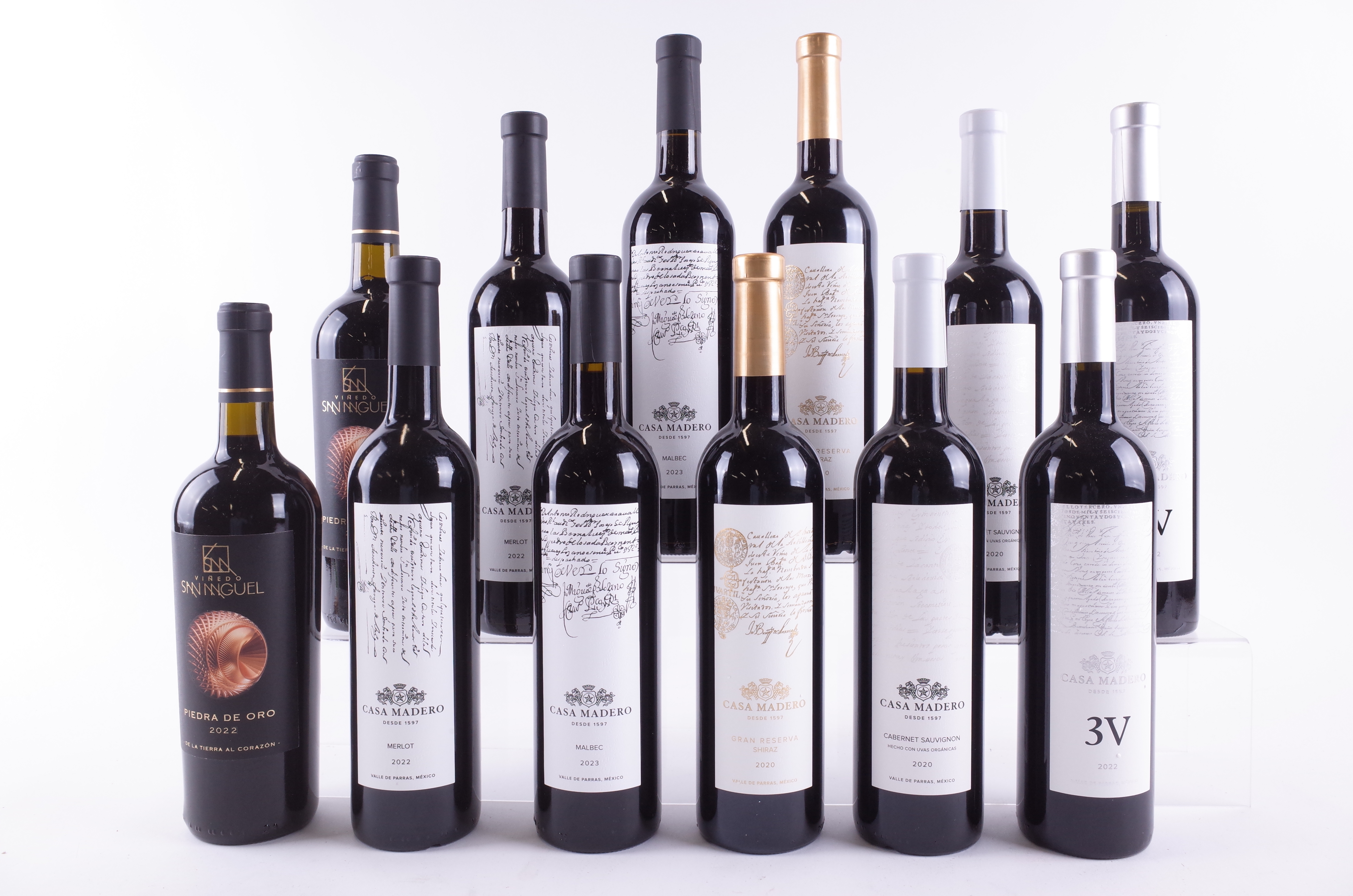 San Miguel de Allende 2 x Piedra De Oro 2022; Casa Madero 2 x Merlot 2022, 2 x Malbec 2023, 2 x Gran Reserva Shiraz 2020, 2 x Organic Cabernet Sauvignon 2020 and 2 x 3V 2022