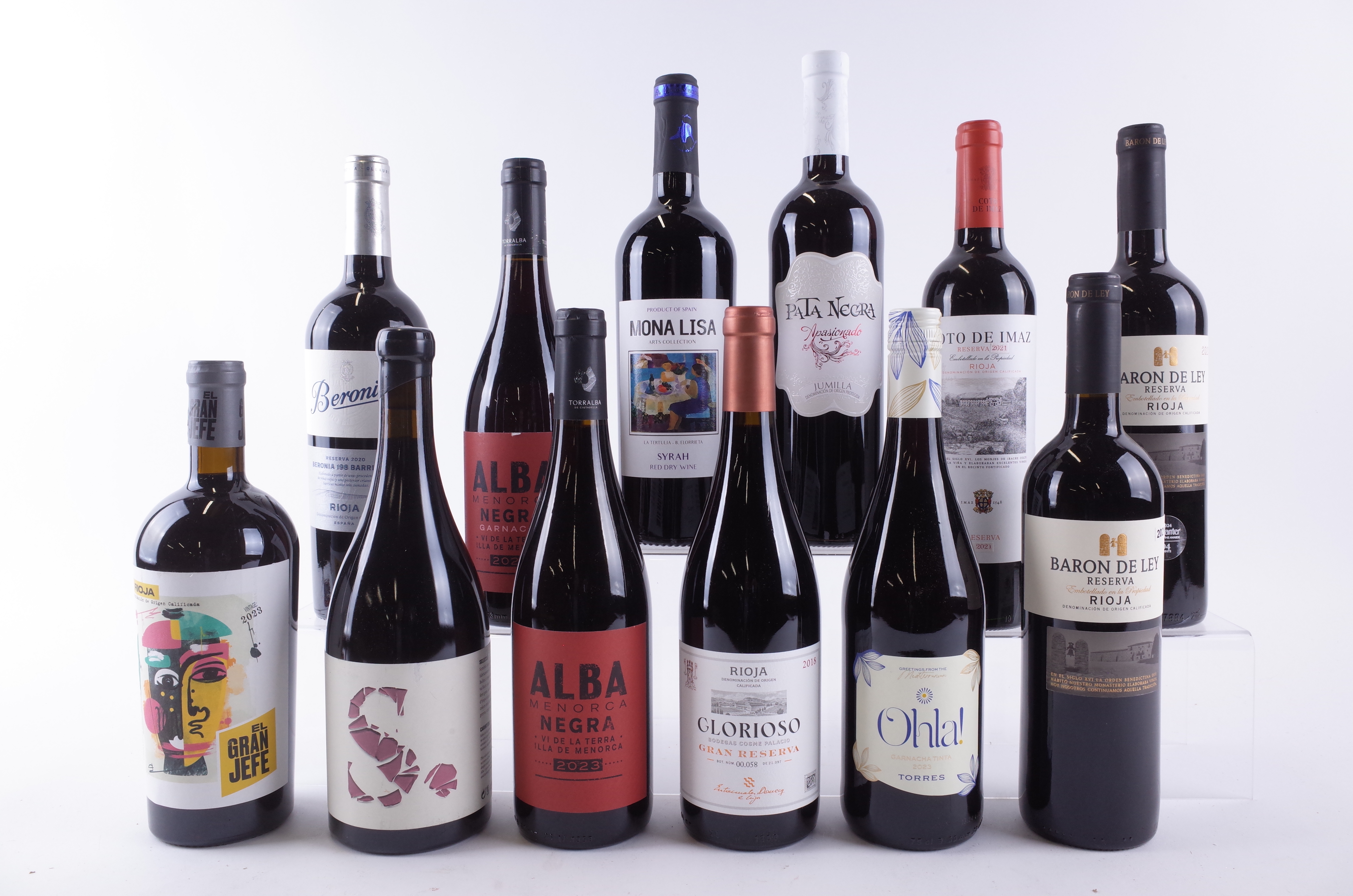 El Gran Jefe Rioja 2023; Altavins Selecció 2020; Alba Negra Garnacha 2024 and Negra 2023; Glorioso Rioja Gran Reserva 2018; Miguel Torres Ohla! Garnacha 2023; Baron de Ley Rioja Reserva 2020 and Rioja Reserva 2021; Beronia Rioja Reserva 2020; Mona Lisa Syrah; García Carrión Pata Negra Apasionado Jumilla; Coto de Imaz Rioja Reserva 2021