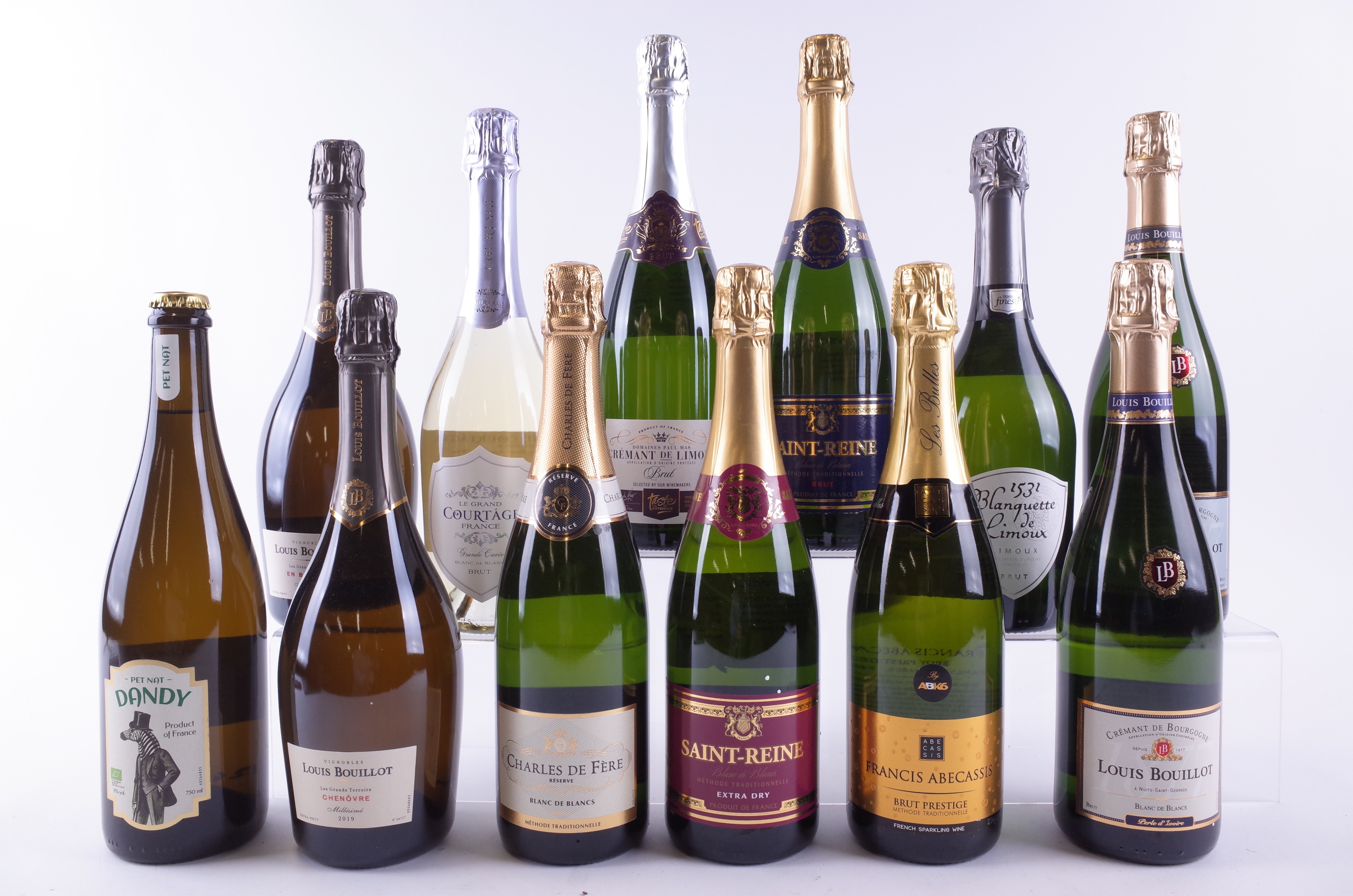 Dandy Pet Nat; Louis Bouillot En Bollery 2019, Chenôvre 2019, Crémant de Bourgogne Perle d'Ivoire and Crémant de Bourgogne Perle de Nuit; Charles de Fère Réserve Blanc de Blancs; Le Grande Courtâge Grande Cuvée Brut Blanc de Blancs; Sainsbury's Taste The Difference Crémant de Limoux Brut; Saint-Reine Brut and Extra Dry; Francis Abecassis Brut Prestige; Tesco Finest Blanquette de Limoux Brut 2023