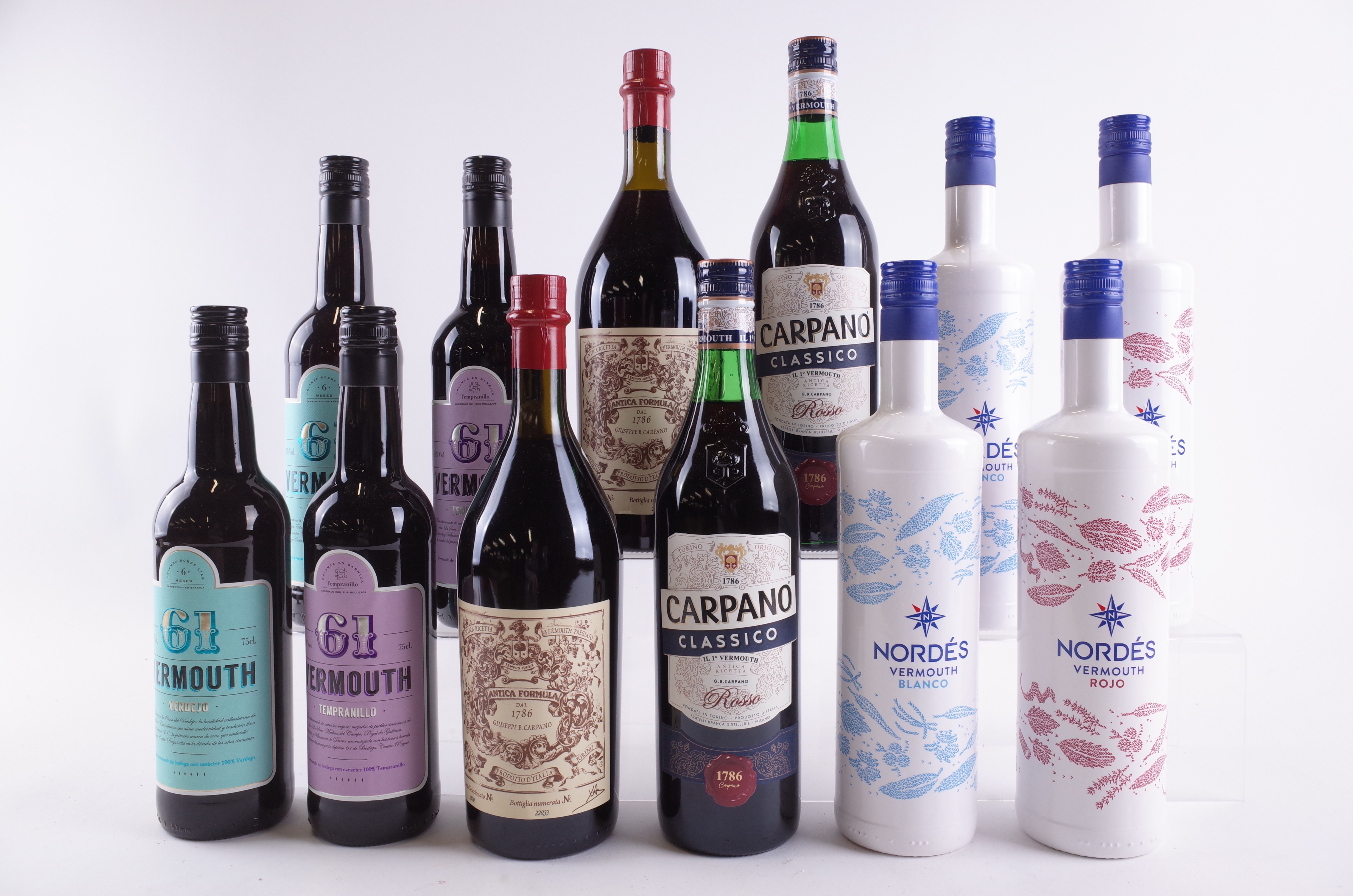 Bodega Cuatro Rayas 2 x 61 Verdejo Vermouth Dry NV and 2 x 61 Vermouth Tempranillo Dry NV; Fratelli Branca Distillerie 2 x Carpano Antica Formula and 2 x Carpano Rosso; Grupo Osborne 2 x Nordés Vermouth Sweet NV (W) and 2 x Nordés Vermouth Sweet NV