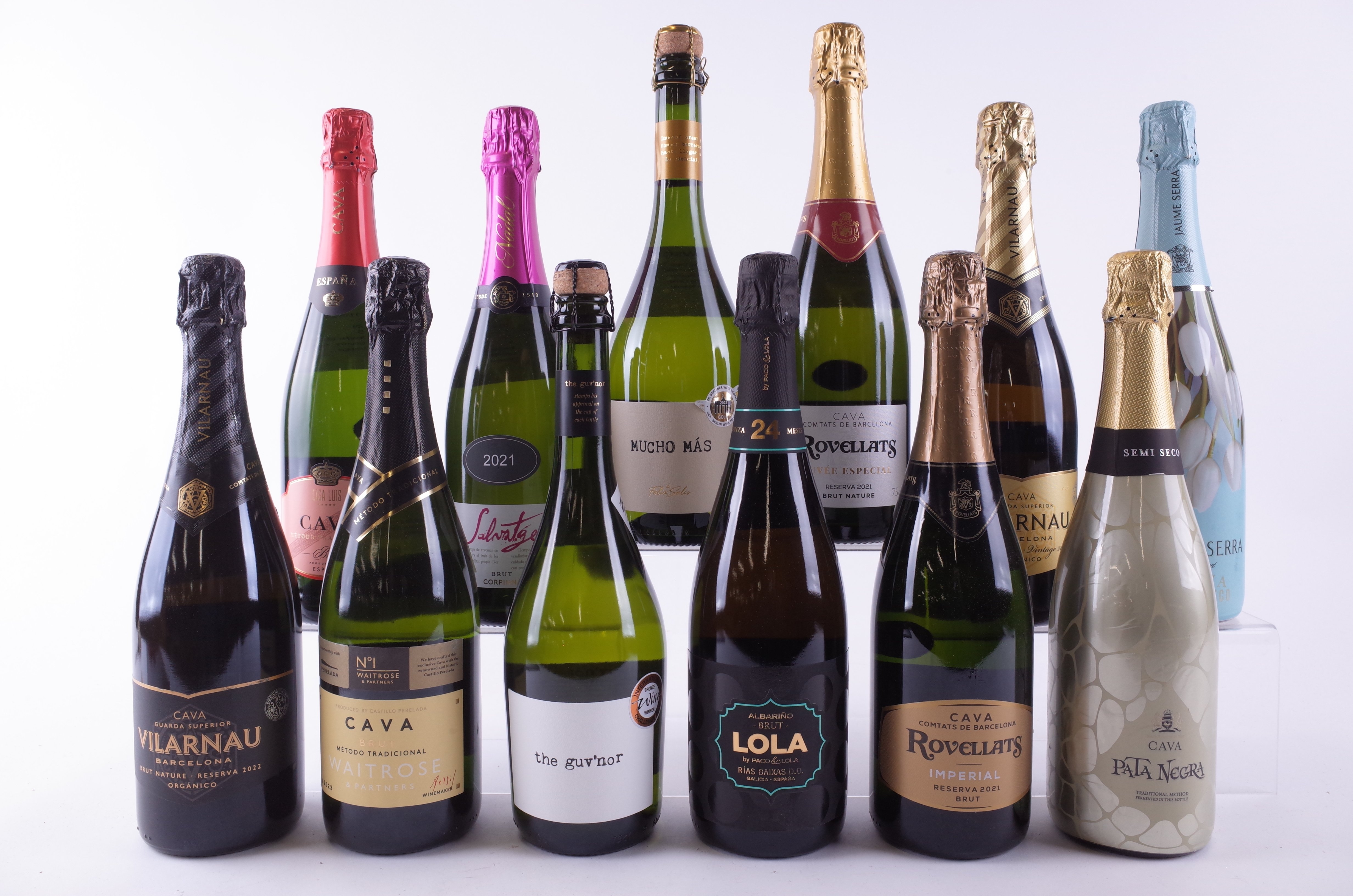 Vilarnau Cava Guarda Superior 2022 and Gran Reserva Cava 2018; Waitrose + Partners N°1 Cava Brut 2022; Felix Solis the guv'nor and Mucho Más; Paco + Lola Lola Albariño Brut 2023; Rovellats Cava Imperial Reserva Brut 2021 and Cuvée Especial Reserva Brut Nature 2021; Garcia Carrion Jaume Seerra Bouquet Cava Semi Seco and Pata Negra Cava Semi Seco; Nadal Salvatge Corpinnat Edició Limitada Brut 2021; Casa Luis Cava Brut